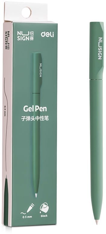 Ручка гелевая автоматическая Deli, Nusign, черная, 0,5мм, мягкое письмо, зеленый цвет корпуса