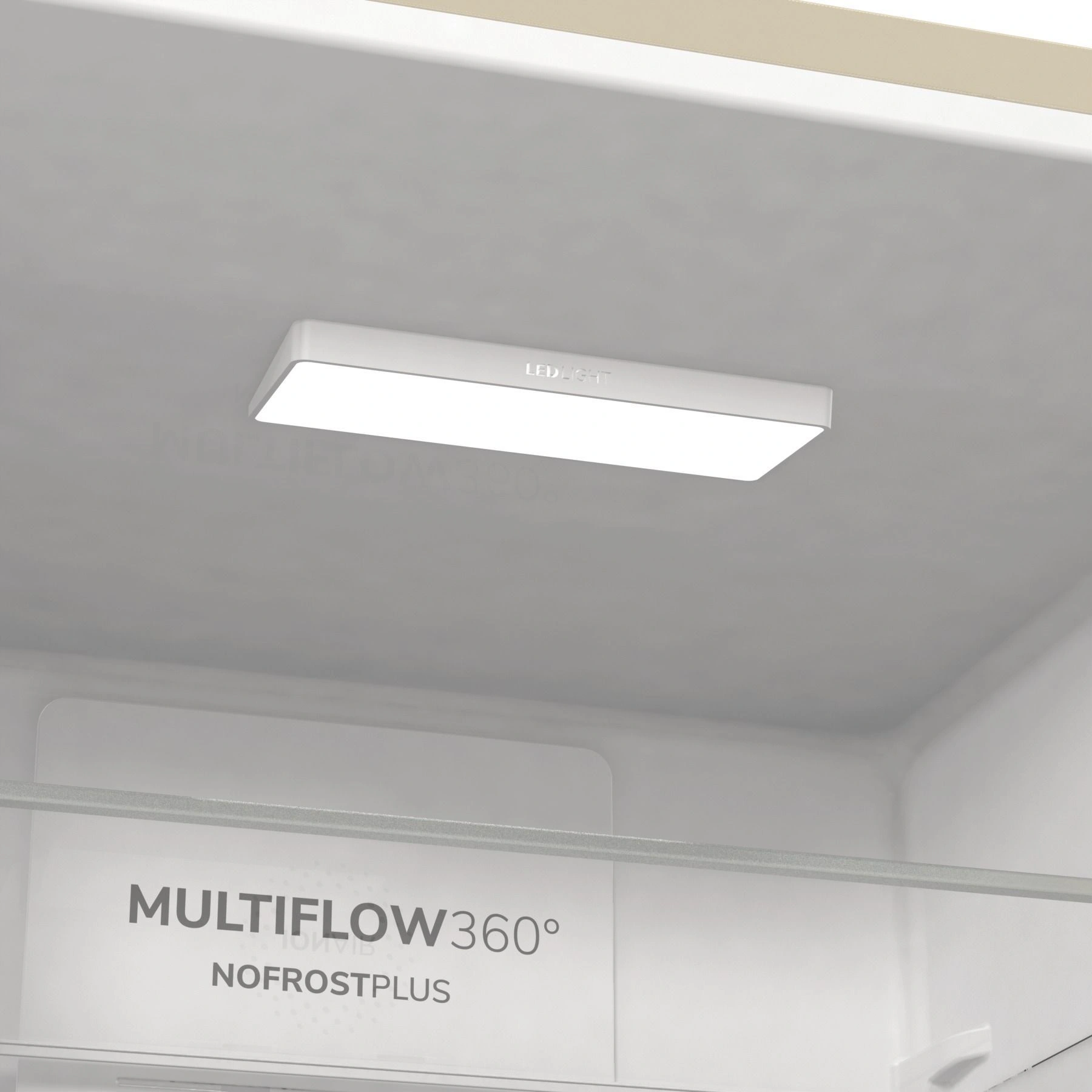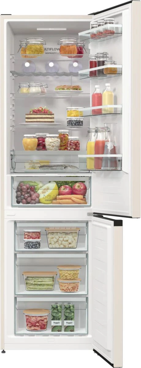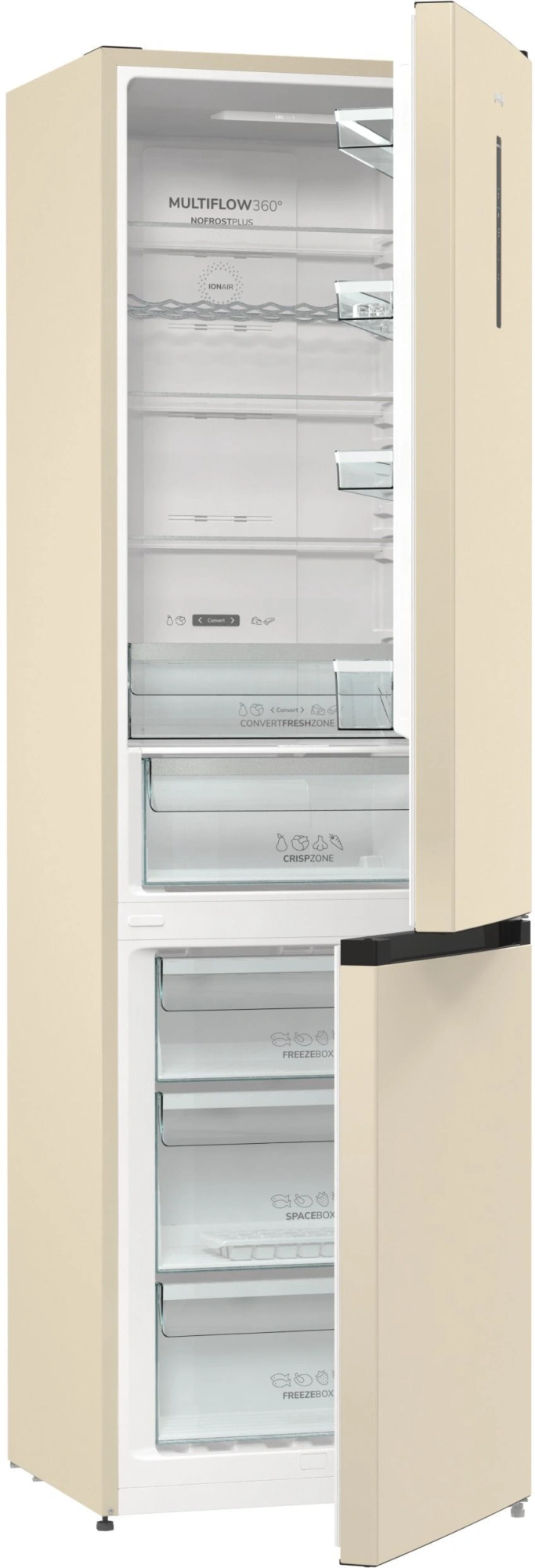 Технология IonAir и система MultiFlow 360°. AdaptTech: адаптивная технология охлаждения. Режим «Эко». Светодиодное освещение на потолке. Контейнер для овощей CrispZone. Конвертируемый контейнер FreshZone.