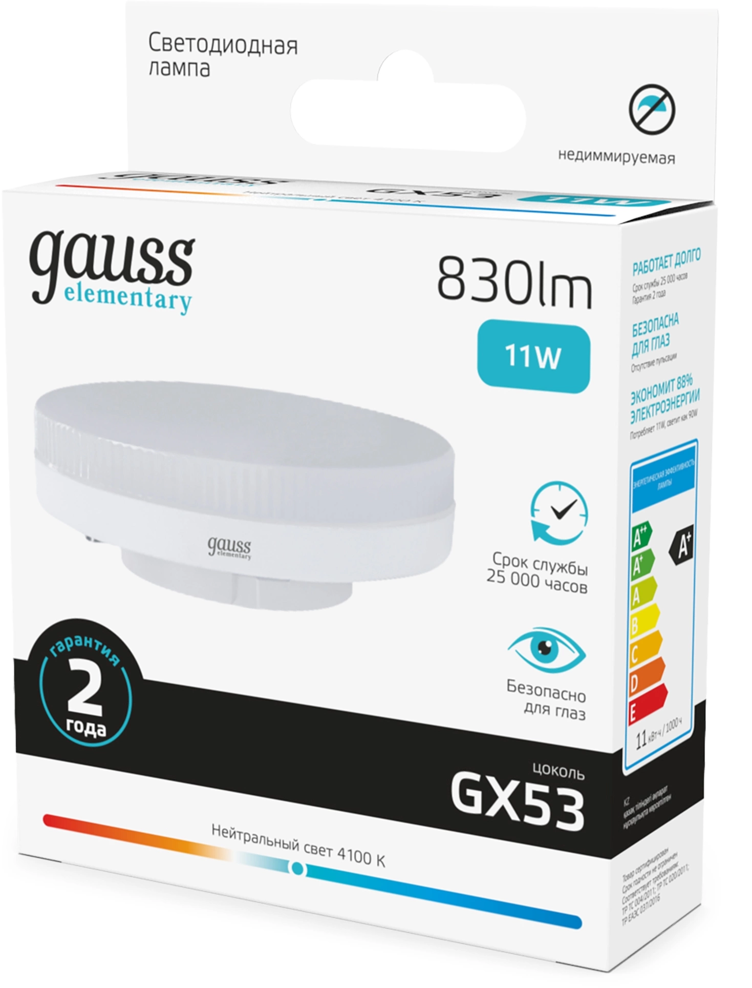 Светодиодная лампа Gauss - самый безопасный для здоровья и окружающей среды источник света. Она не пульсирует, мгновенно включается, не содержит ртути, и имеет больший срок службы, чем лампы накаливания и КЛЛ.