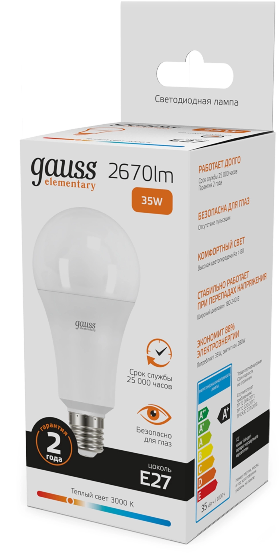 Светодиодная лампа Gauss - самый безопасный для здоровья и окружающей среды источник света. Она не пульсирует, мгновенно включается, не содержит ртути, и имеет больший срок службы, чем лампы накаливания и КЛЛ.
