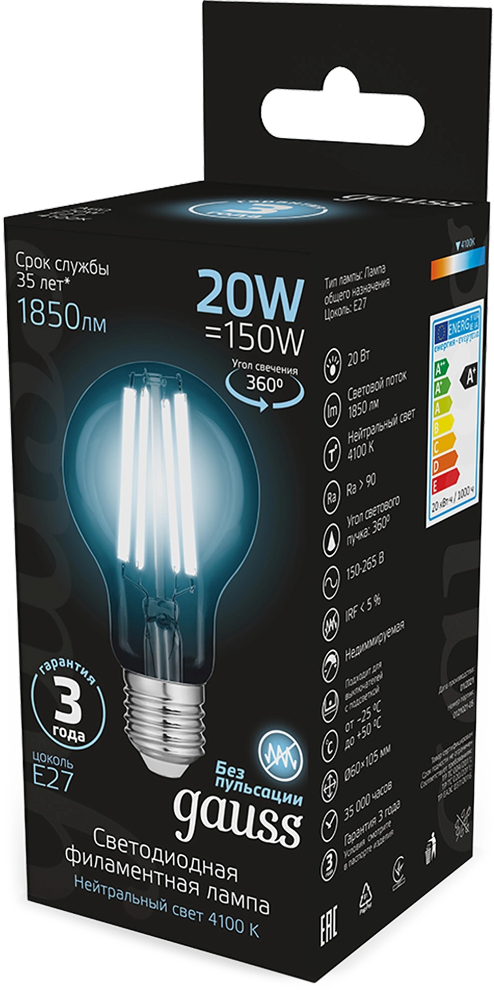 20Вт цок.:E27 груша 220B св.свеч.бел.нейт. (упак....