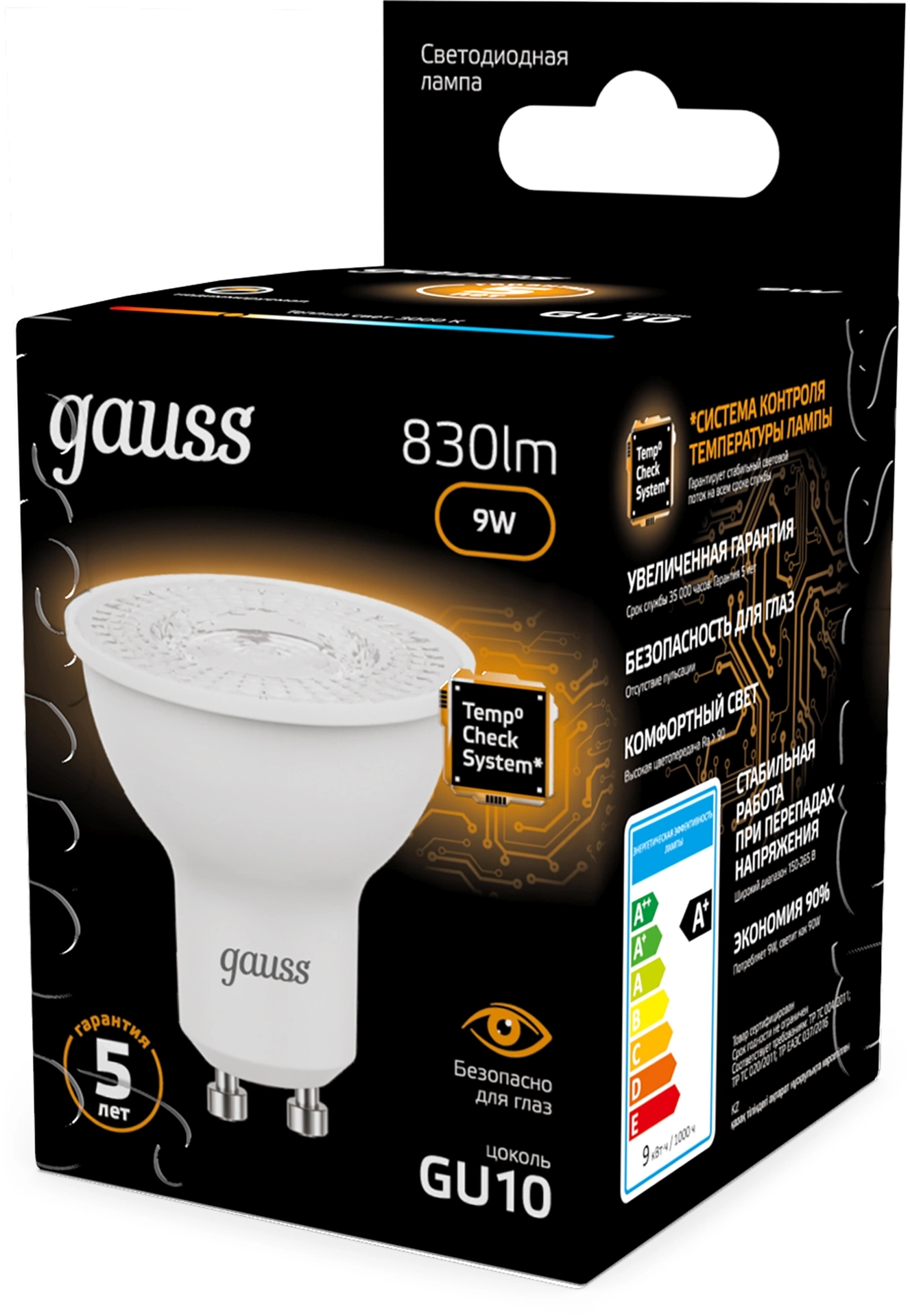 9Вт цок.:GU10 рефлек. 220B св.свеч.бел.теп. MR16 ...