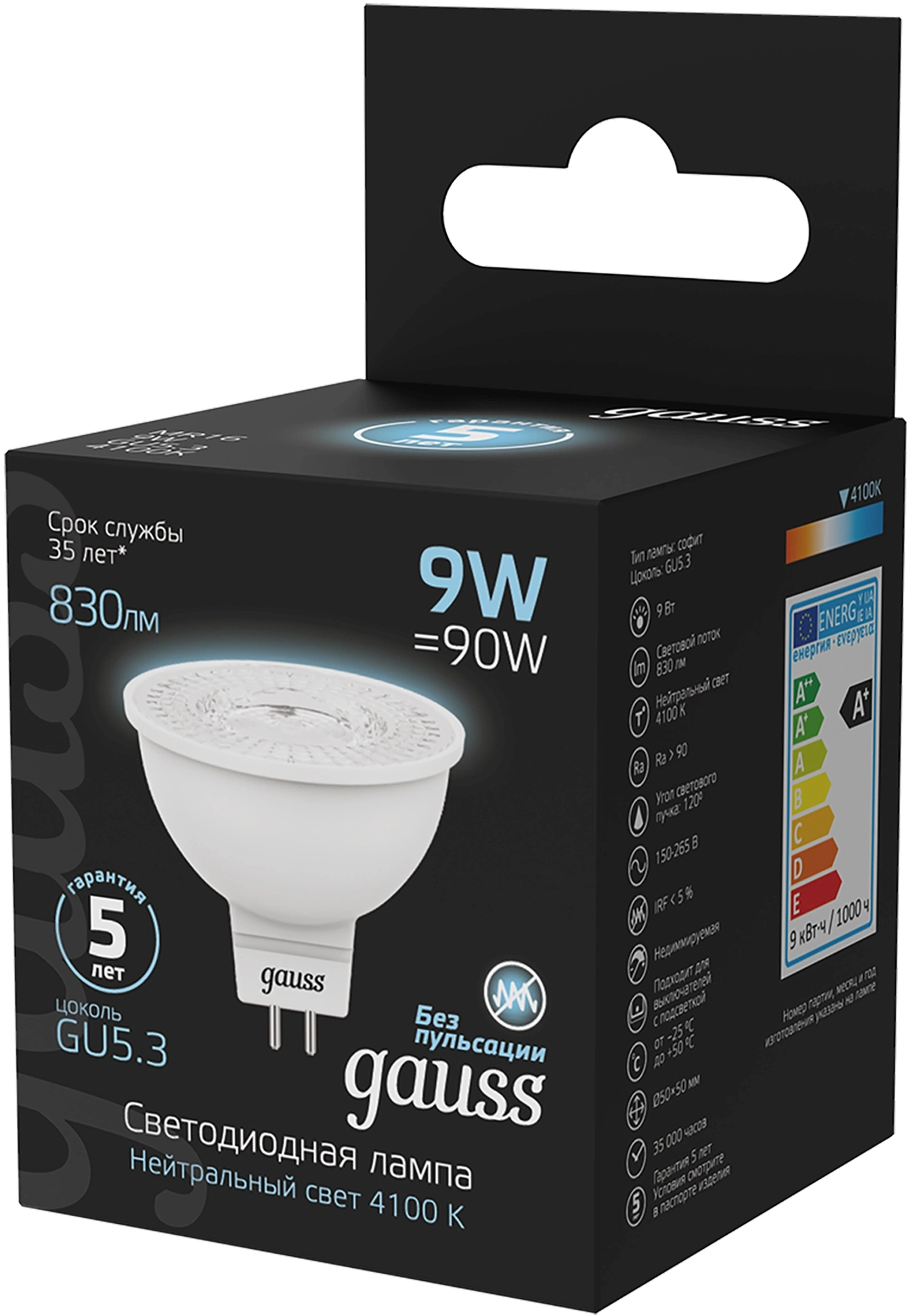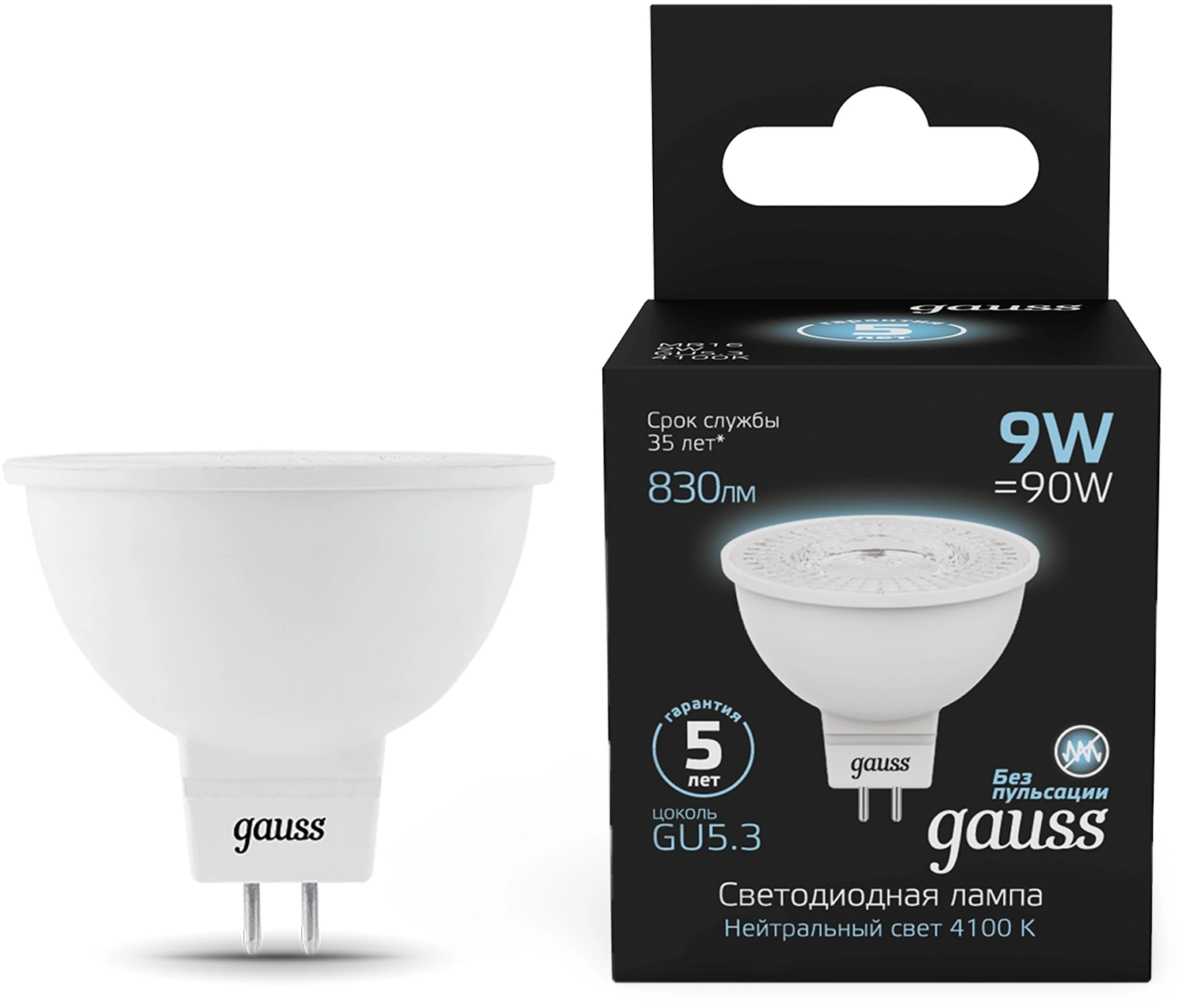 9Вт цок.:GU5.3 рефлек. 220B св.свеч.бел.нейт. MR1...