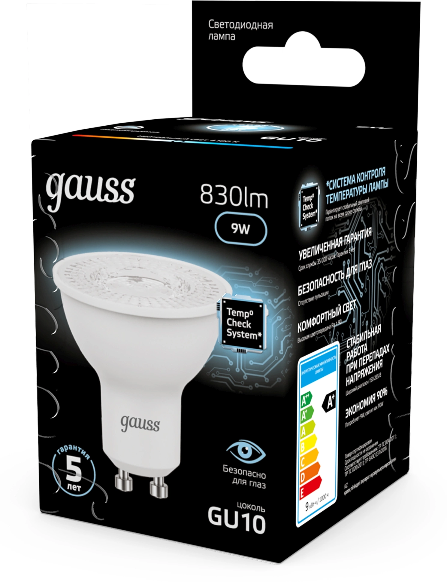 9Вт цок.:GU10 рефлек. 220B св.свеч.бел.нейт. MR16...