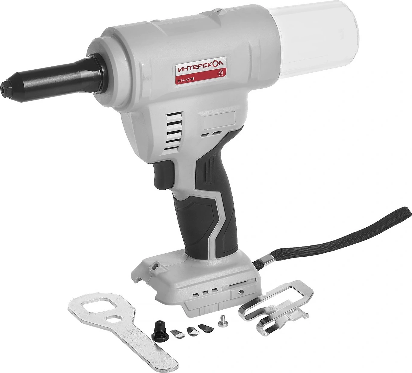 Аккумуляторный заклепочный пистолет с бесщеточным (вентильным) двигателем. Применяется для установки вытяжных заклепок размером от 2,4 до 6.4 мм. сталь/алюминий/нержавеющая сталь/медь.