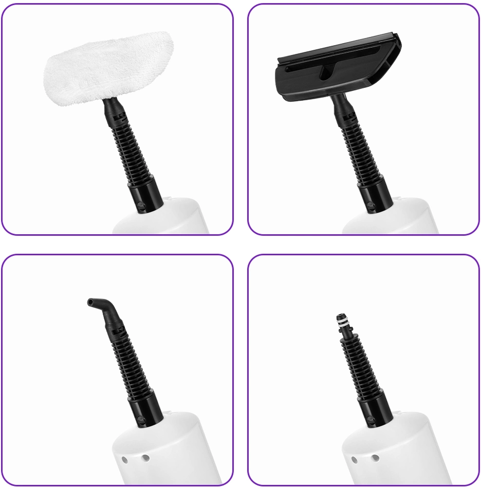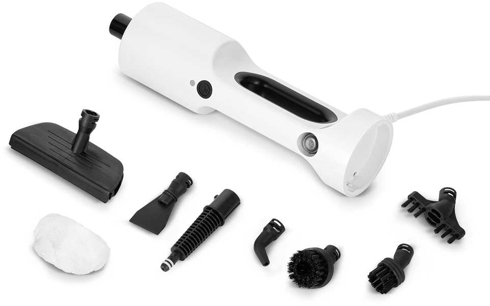 тряпка для пола, рамка для ковра, насадка для отпаривания с резиновым скребком, тряпка для отпаривания, струйная насадка, скребок, плоская нейлоновая щетка, малая круглая нейлоновая щетка, большая круглая нейлоновая щетка, угловая насадка