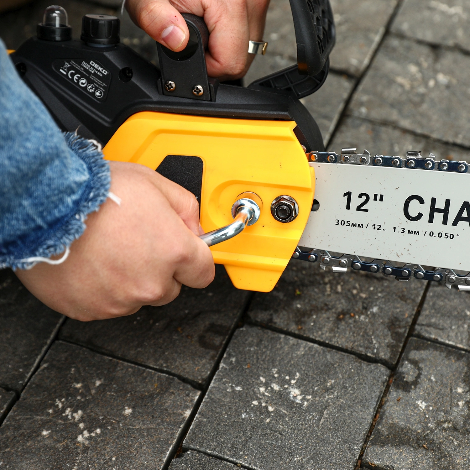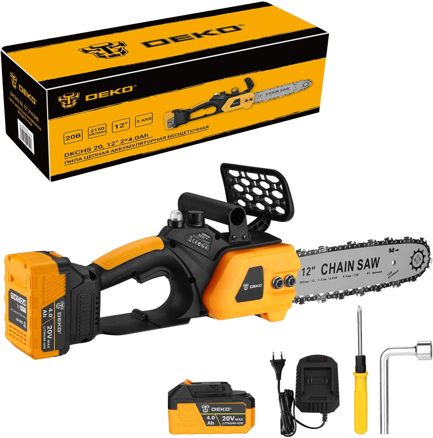 1шт пила, 1шт шина, 1шт цепь, 1шт защитный щиток, 2шт АКБ, 1шт зарядное устройство, 1шт отвертка, 1шт ключ торцовочный, 1шт руководство по эксплуатации, 1шт коробка