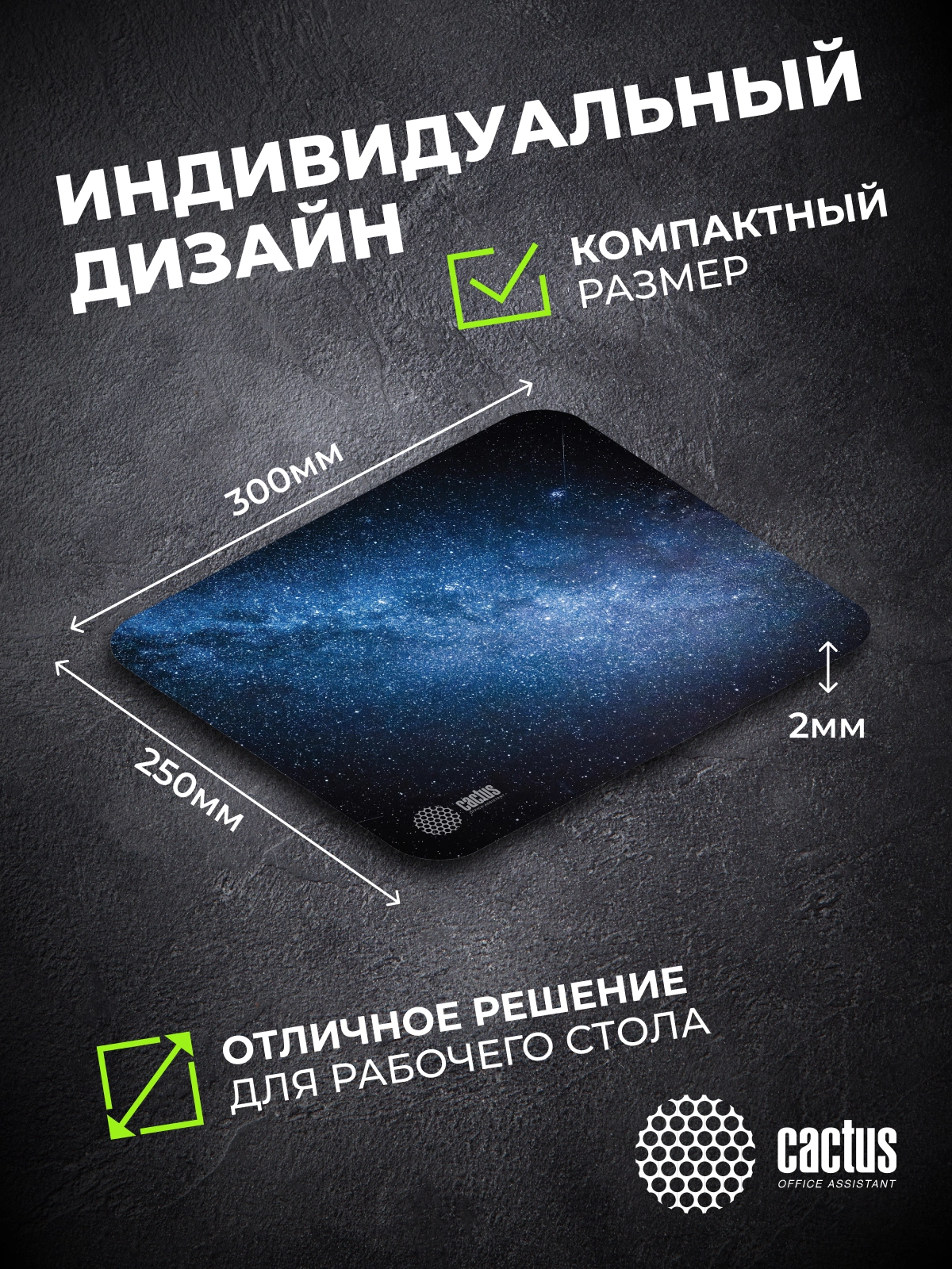 Коврик для мыши Cactus идеально подойдёт фанатам логических головоломок, квестов и стратегий. Он также будет полезен и пользователям офисных программ и графических редакторов, помогая более полно взаимодействовать с компьютерной мышью и точно позиционировать курсор.