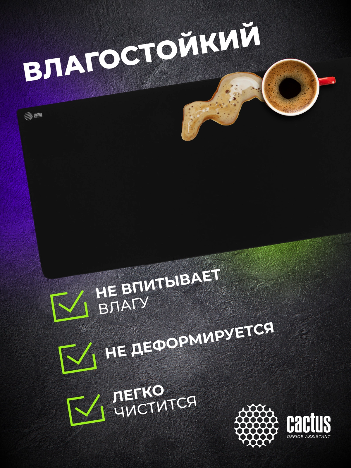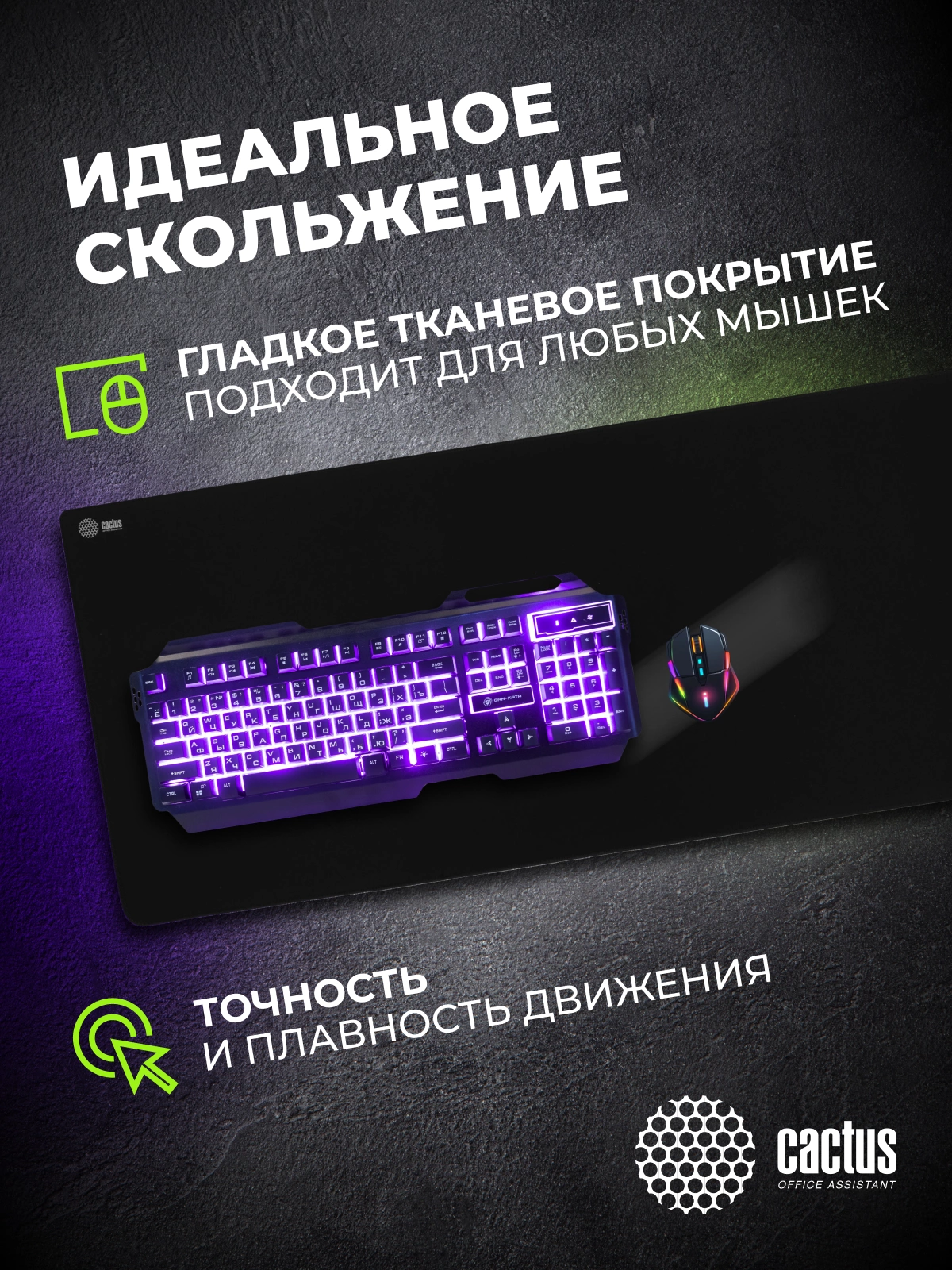 Коврик для мыши Cactus серии Professional предназначен в первую очередь для профессиональных геймеров. Большой размер коврика 900х400мм позволяет расположить на нём не только мышку, но и полноразмерную клавиатуру, предотвращая и её скольжение по рабочему столу, что обеспечивает ещё больший комфорт во время игрового процесса. Размера ковра хватит на все ваши действия! И не нужно больше думать о том, что коврик может неожиданно закончиться и сенсор мыши соскользнёт и не считается.
