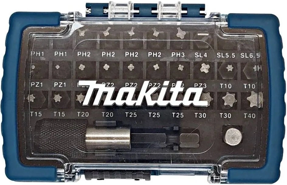 Биты (25 мм): 2 x PH1, 4 x PH2, PH3, 2 x PZ1, 5 x PZ2, PZ3, 2 x T10, 2 x T15, 2 x T20, 3 x T25, 2 x T30, T40, SL 0,8x4, SL 0,8x5, SL 1,2x6,5, 1/4" Адаптер