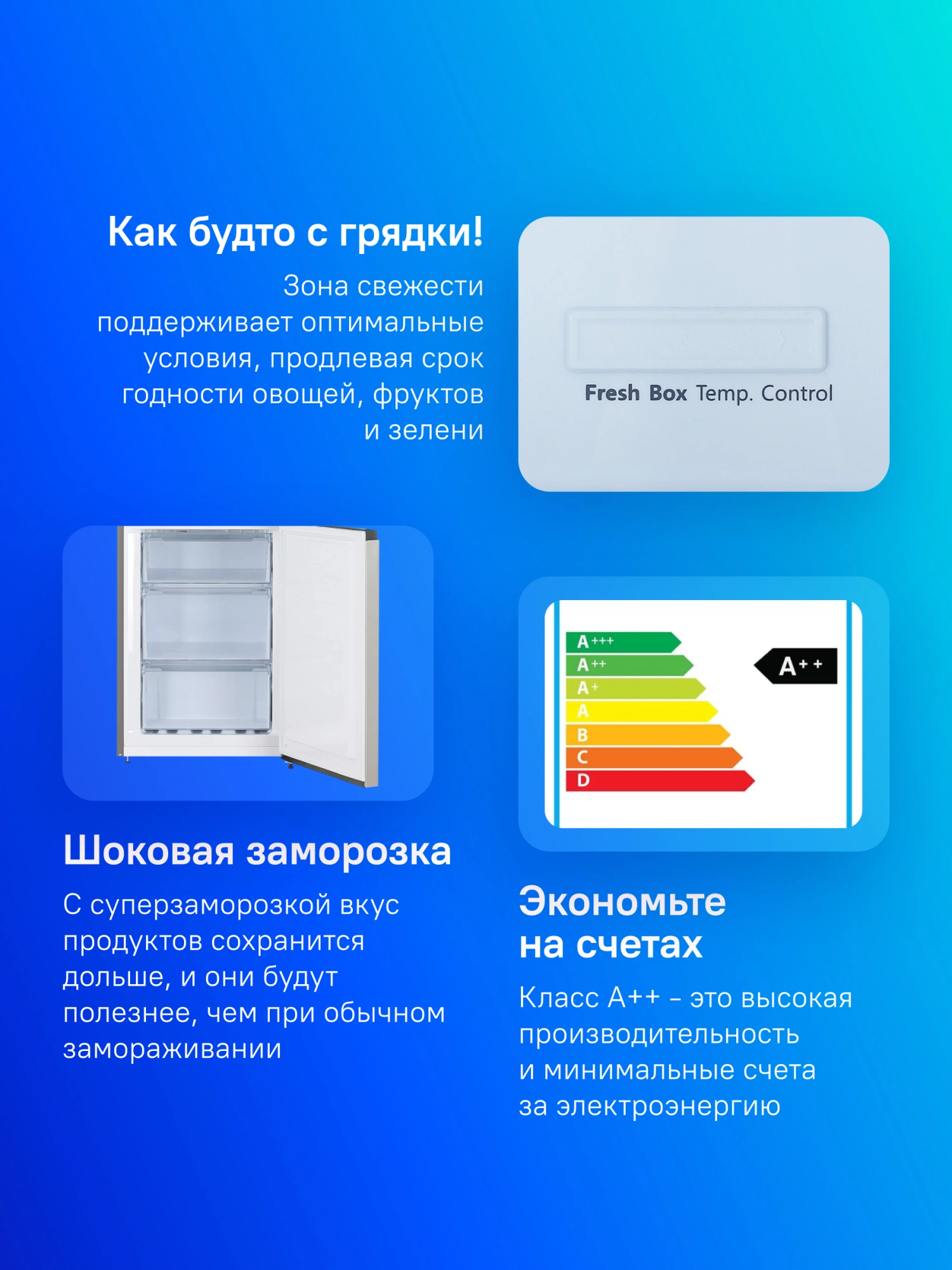 визуальная индикация отключения электропитания, звуковой сигнал незакрытой двери, температуры