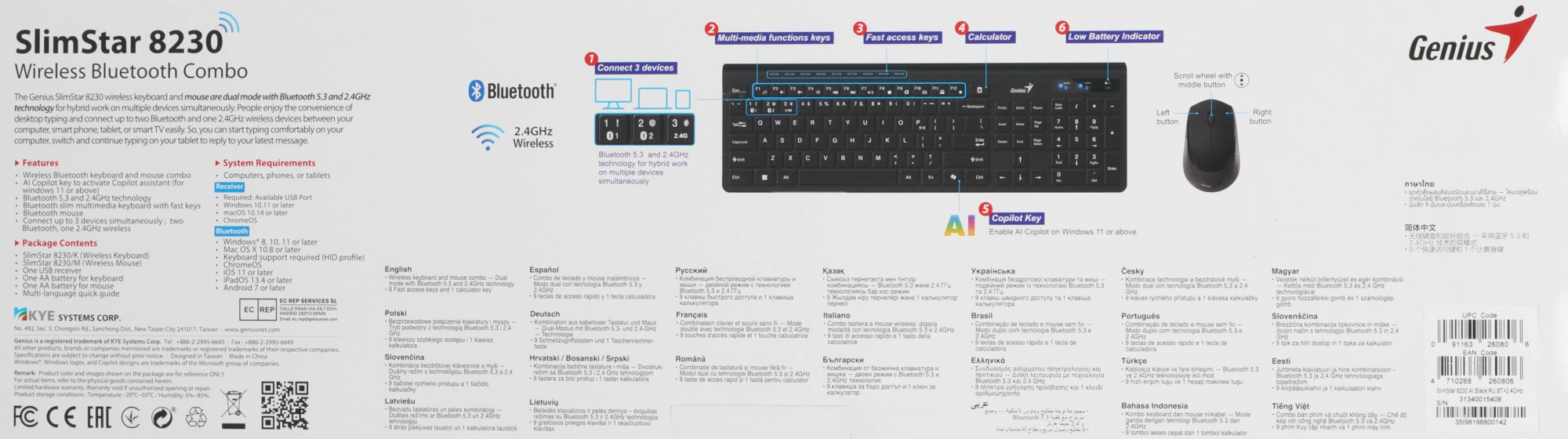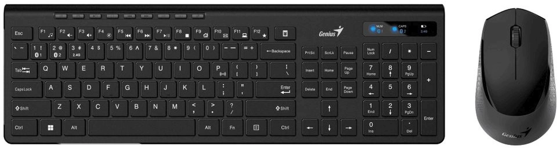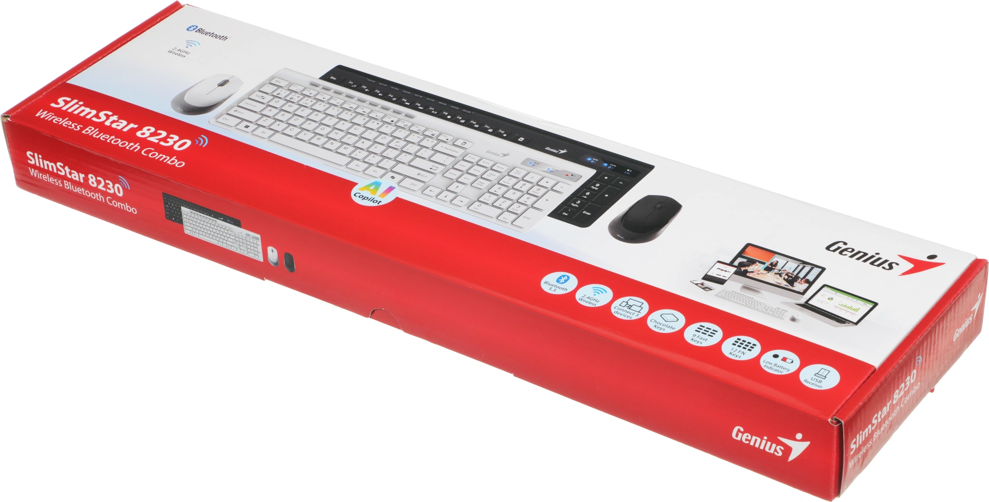 клавиатура Slimstar 8230/K, мышь Slimstar 8230/M, USB приемник, батарейки АА х2, документация