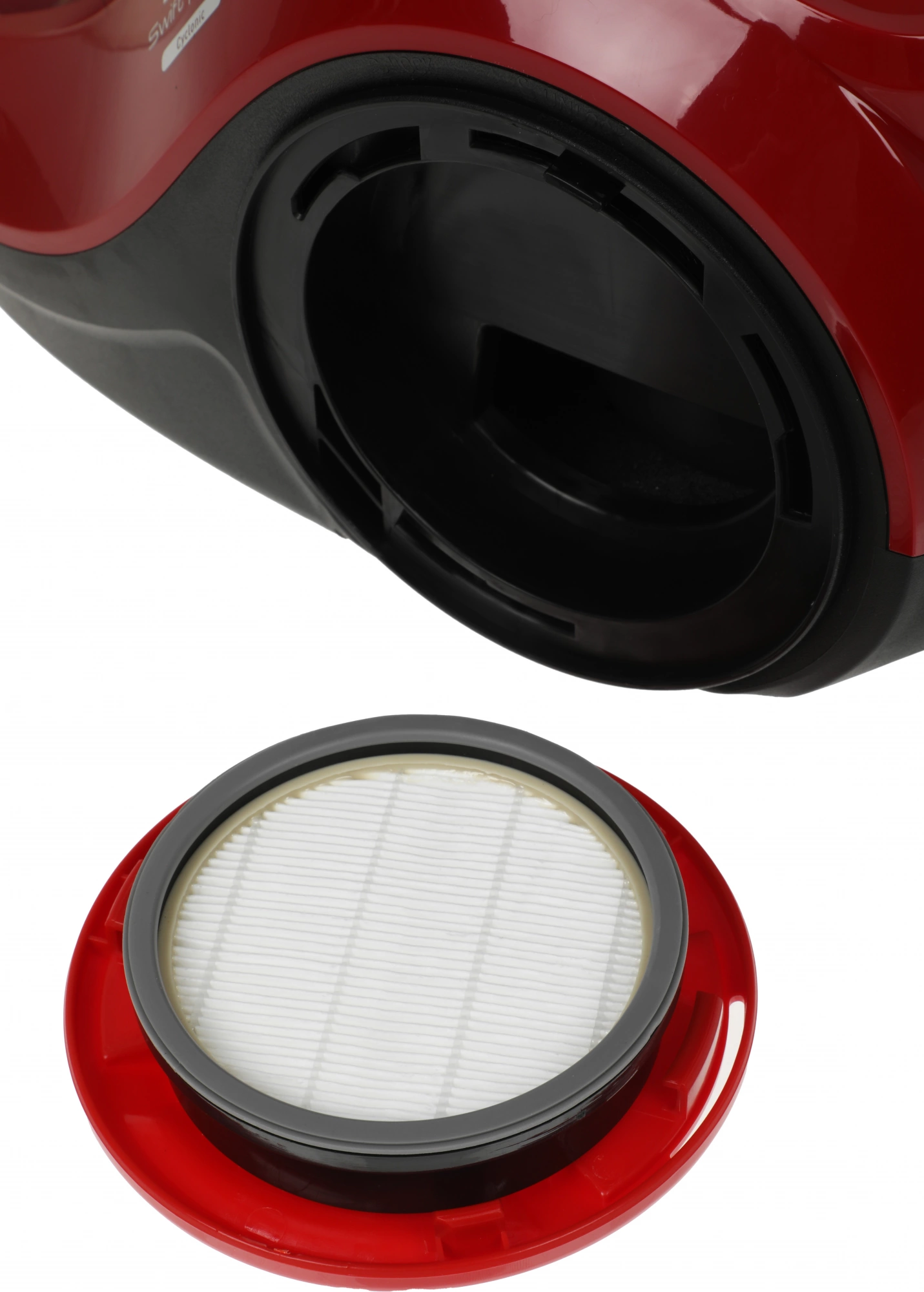легко очищаемый пылесборник, поворачивающиеся колеса, шланг