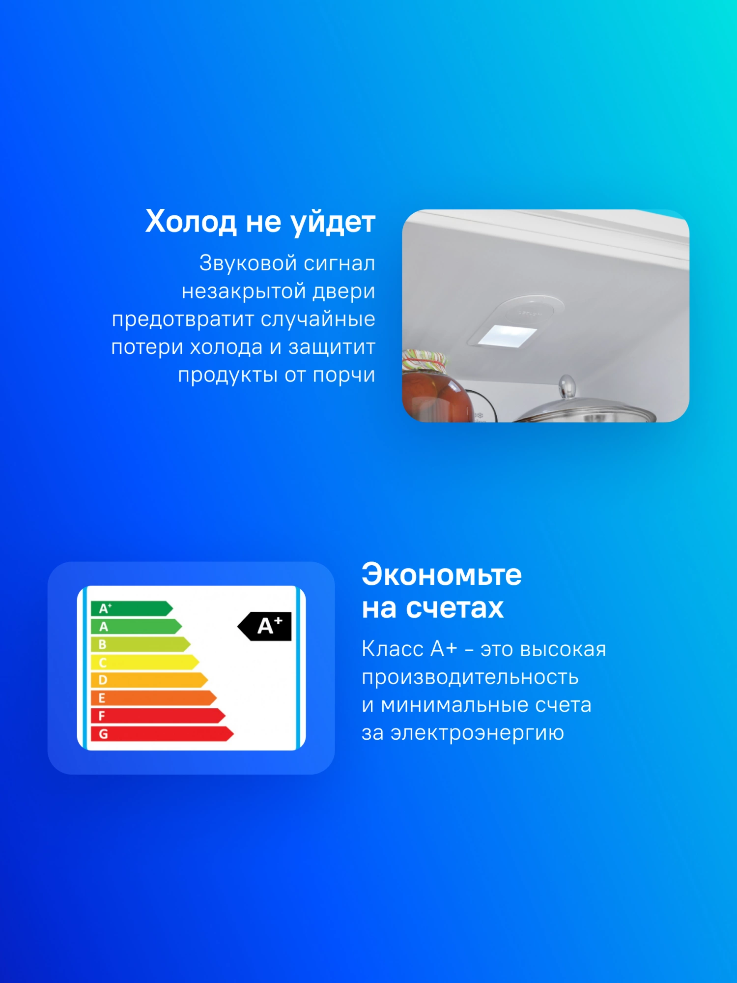 визуальная индикация отключения электропитания, звуковой сигнал незакрытой двери, температуры
