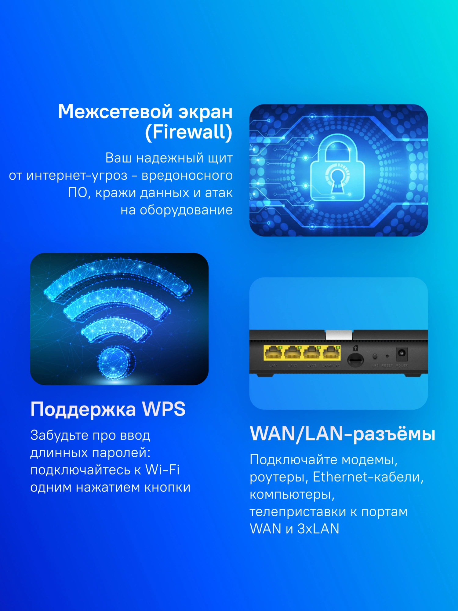 DHCP-сервер, Dynamic DNS (DDNS), MESH, QoS, UPnP, VPN, Wake-on-LAN, WPS, поддержка IPTV, протокол IPv6