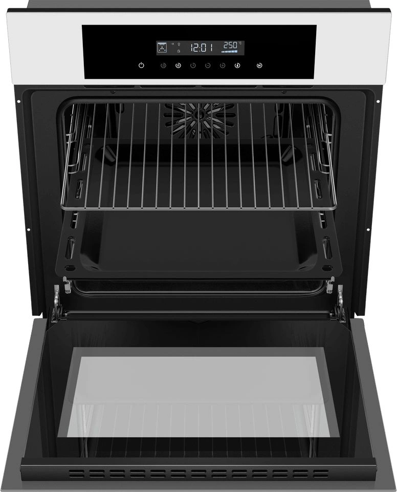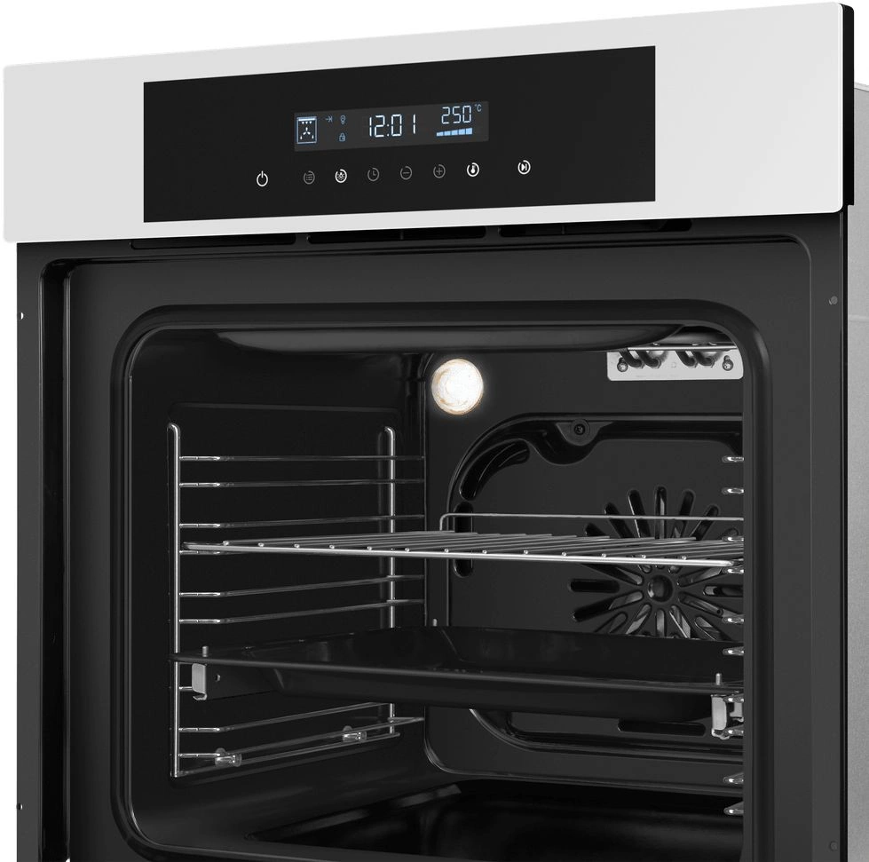 вентилятор охлаждения, дисплей, полностью стеклянная внутренняя поверхность дверцы духовки, телескопические направляющие
