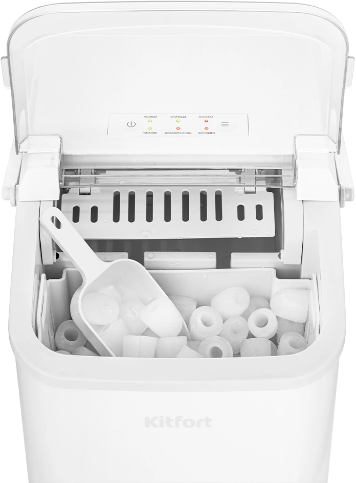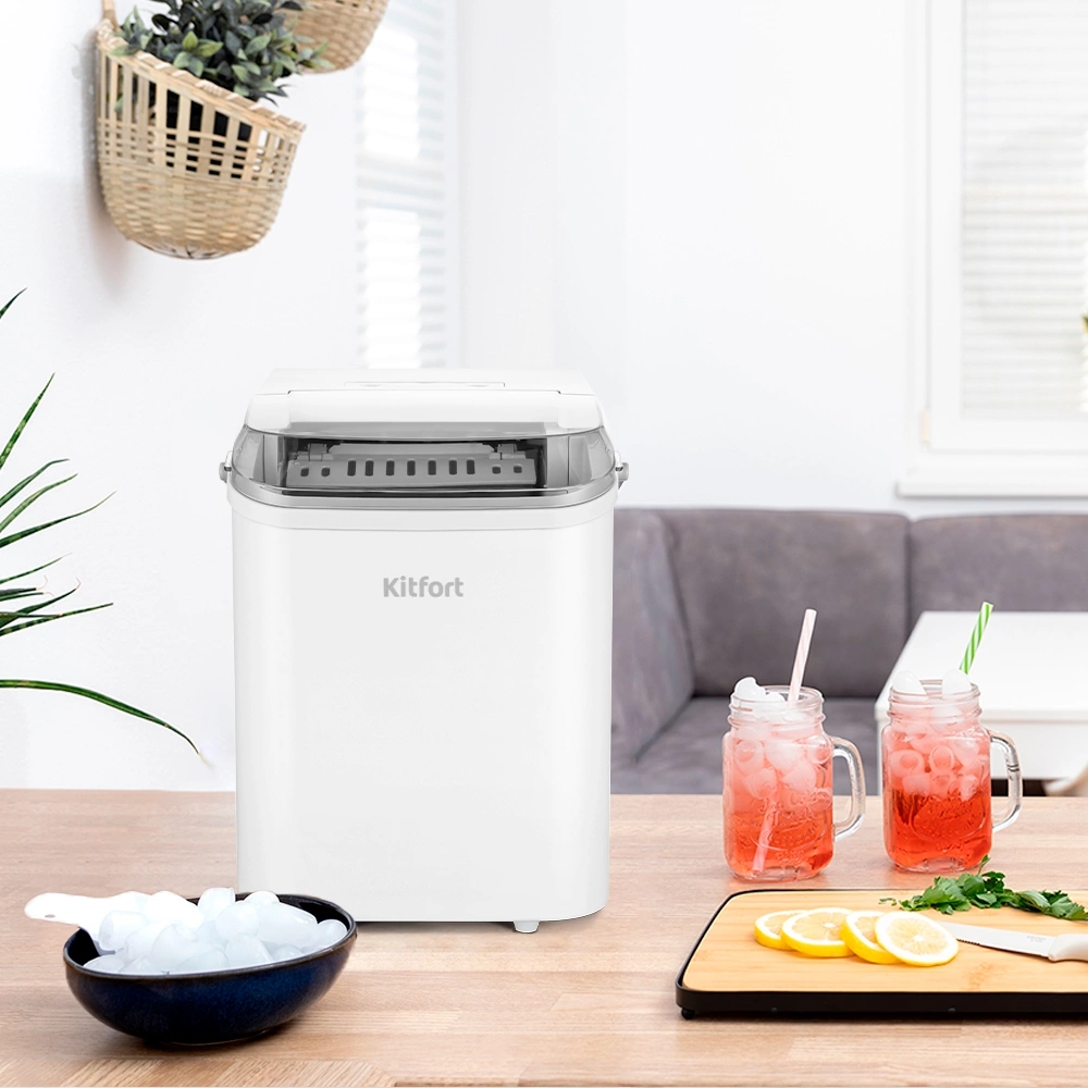 Льдогенератор КТ-1831 – прибор, который быстро генерирует лёд. Его можно использовать дома для приготовления холодных напитков или для охлаждения жидкостей. Готовый лёд не подмораживается, а медленно тает благодаря термоизолированным стенкам.