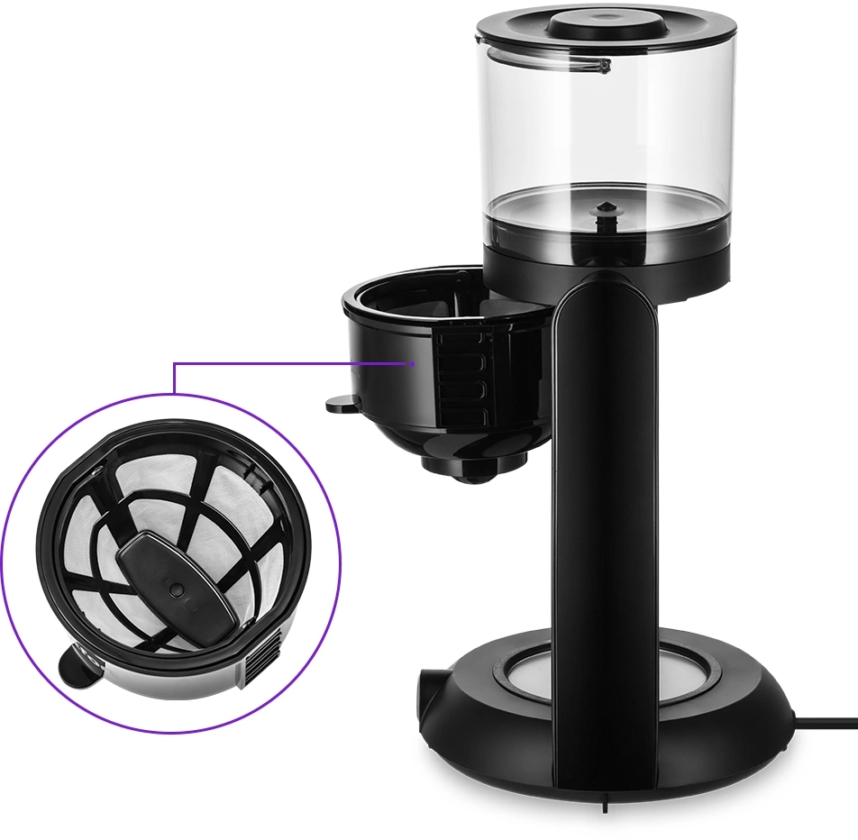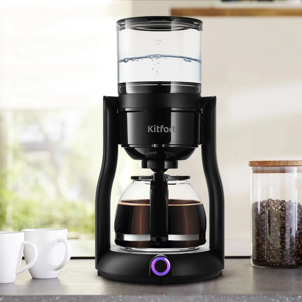 Капельная кофеварка Kitfort КТ-7136 готовит ароматный кофе одним нажатием кнопки. Прибор небольшой по размеру. Устройство полностью разборное и занимает мало места, очень удобно для хранения.