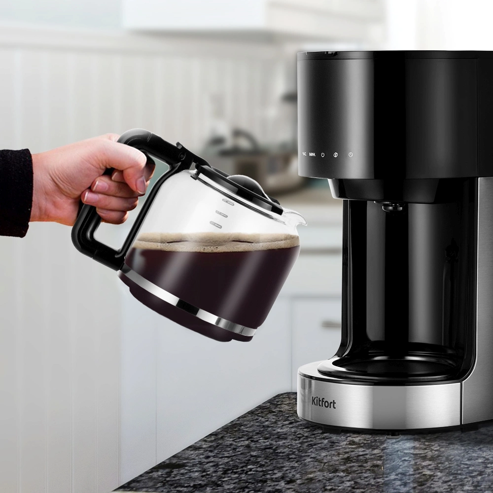 Капельная кофеварка Кіtfort КТ-7297 поможет приготовить ароматный кофе из молотого кофе. Она компактная и простая в использовании. Кофеварка идеально подойдёт для приготовления кофе в домашних условиях или в офисе.