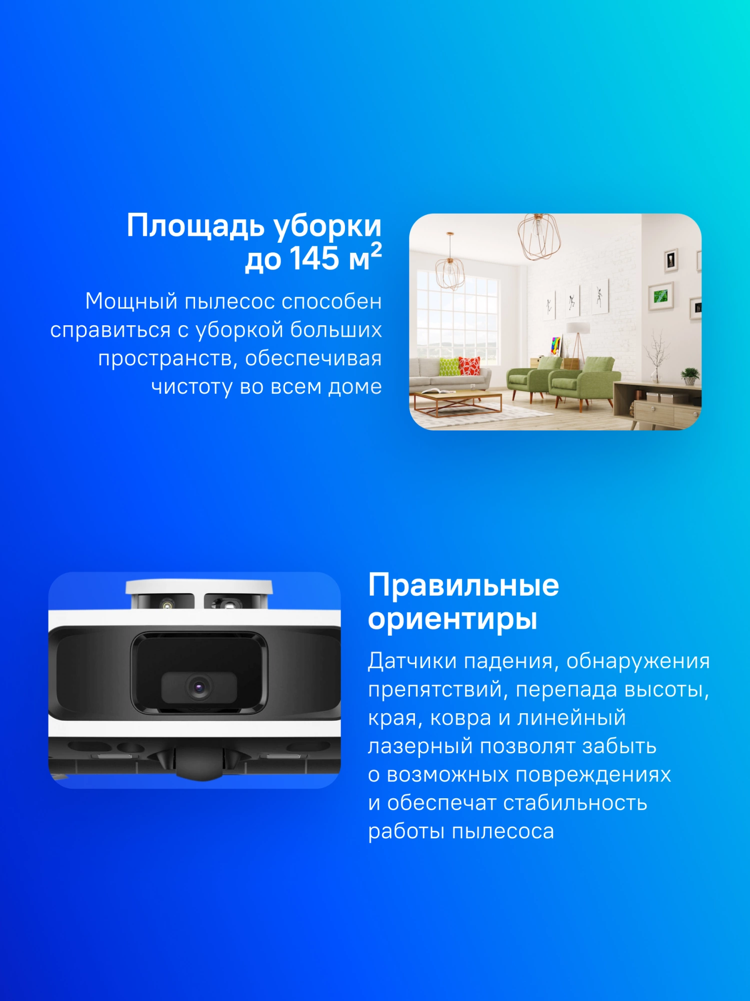 автоматический поиск зарядного устройства, построение карты помещения, уборка по расписанию, управление со смартфона