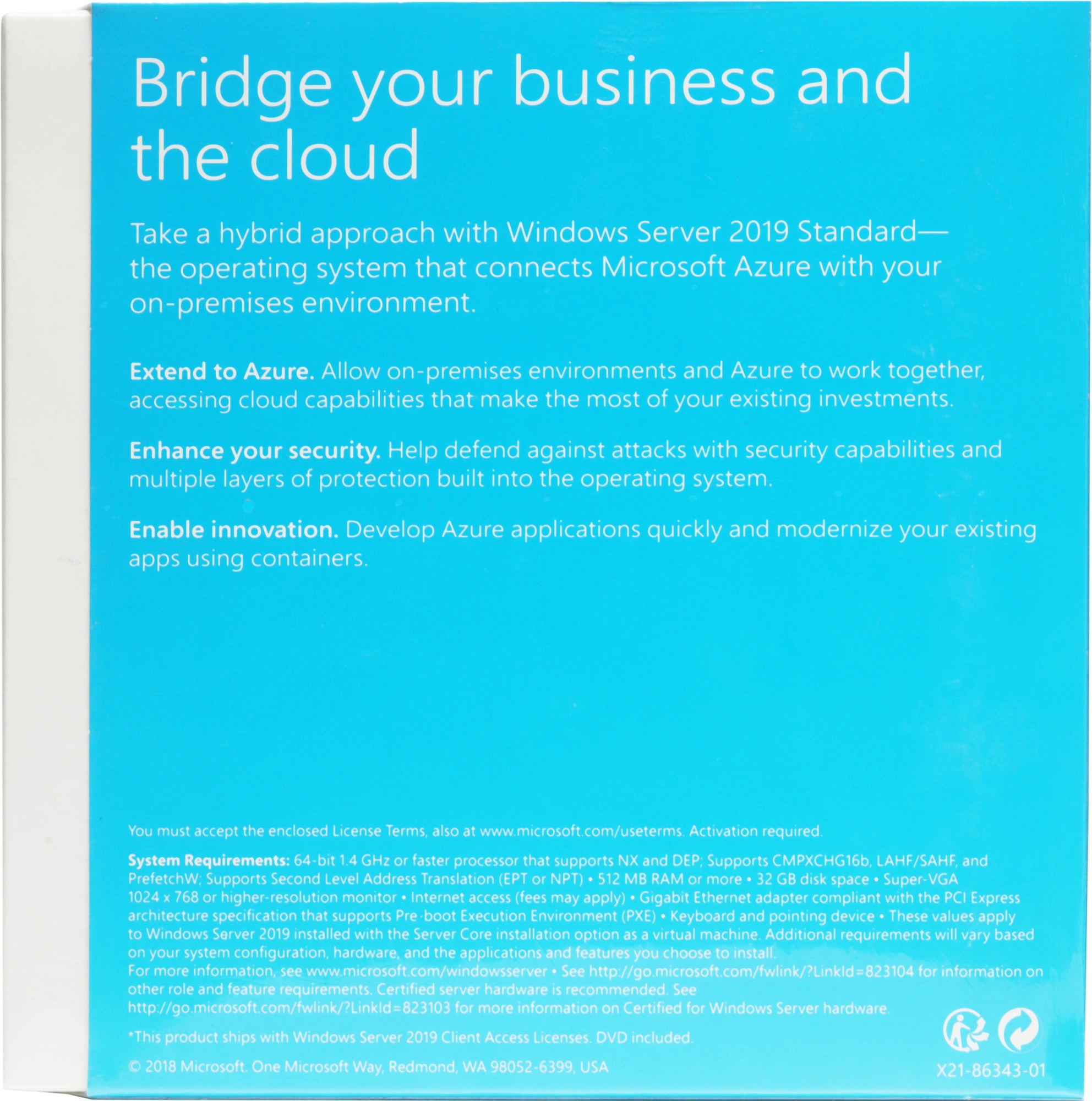 Операционная система Microsoft Windows Server 2019 Standard 5 Clt 64 bit Eng DVD BOX (P73-07680)