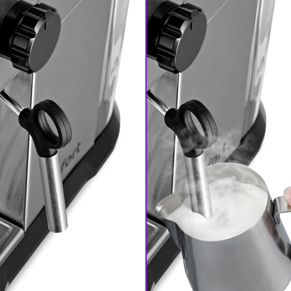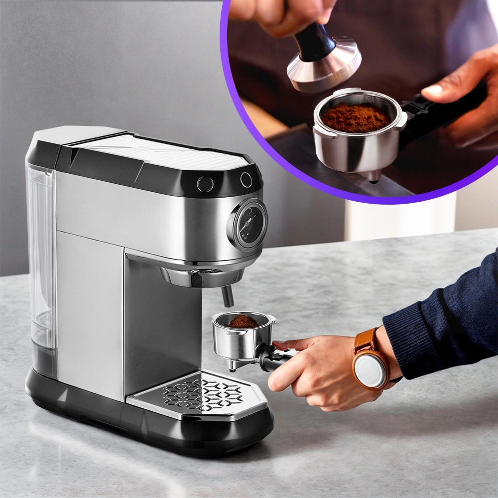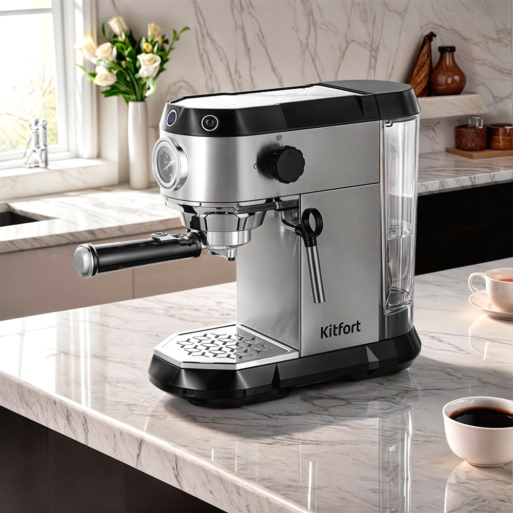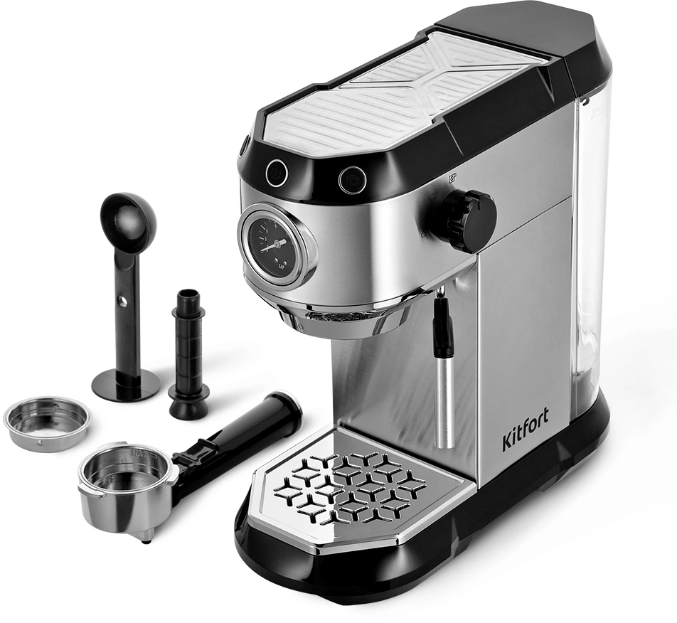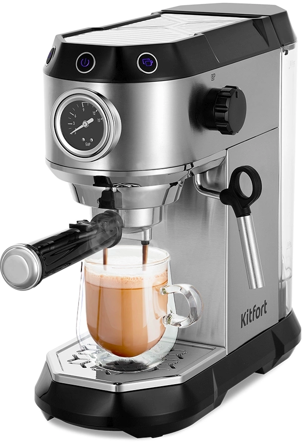 Рожковая кофеварка КТ-7194 поможет приготовить кофе эспрессо, капучино или латте, а также множество других видов кофе на наш вкус. Рожковая кофеварка — отличный выбор для гурманов, желающих ежедневно наслаждаться полным букетом вкуса свежего кофе.