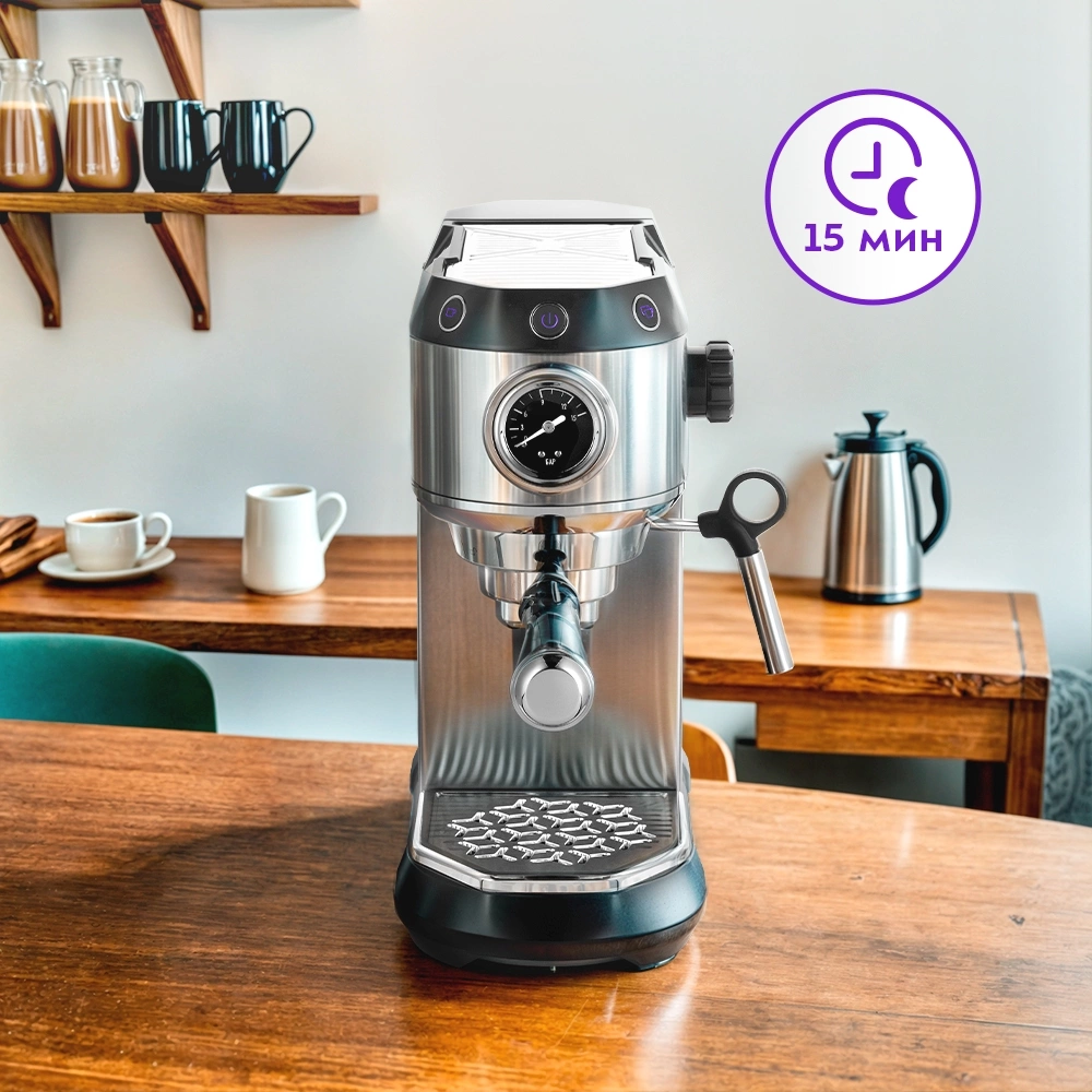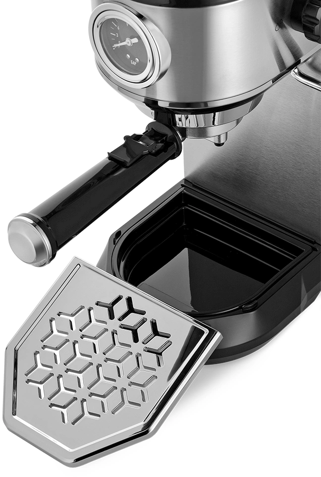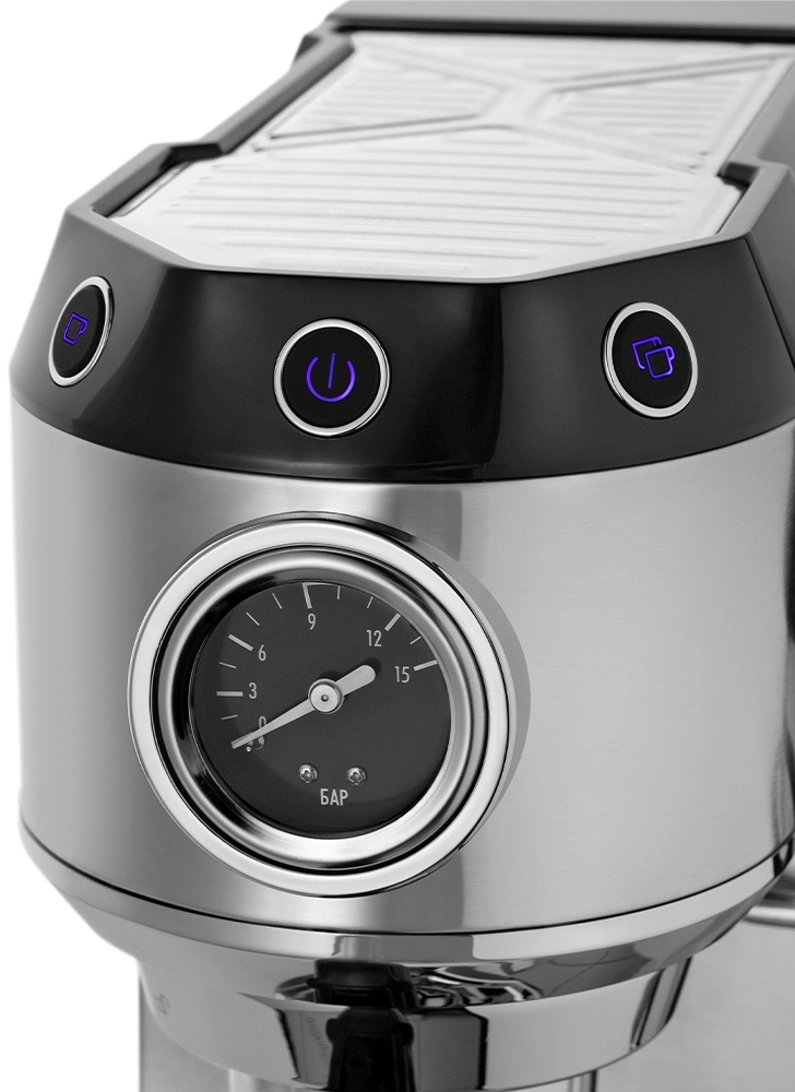 капучинатор, манометр, панель для подогрева чашек, съемный дренажный отсек для капель, съемный поддон для капель, съемный резервуар для воды, темпер