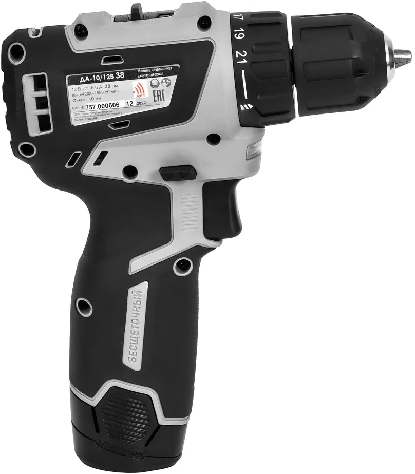 Дрель-шуруповерт, 2 аккумулятора БА-12/1.5, зарядное устройство, коробка.