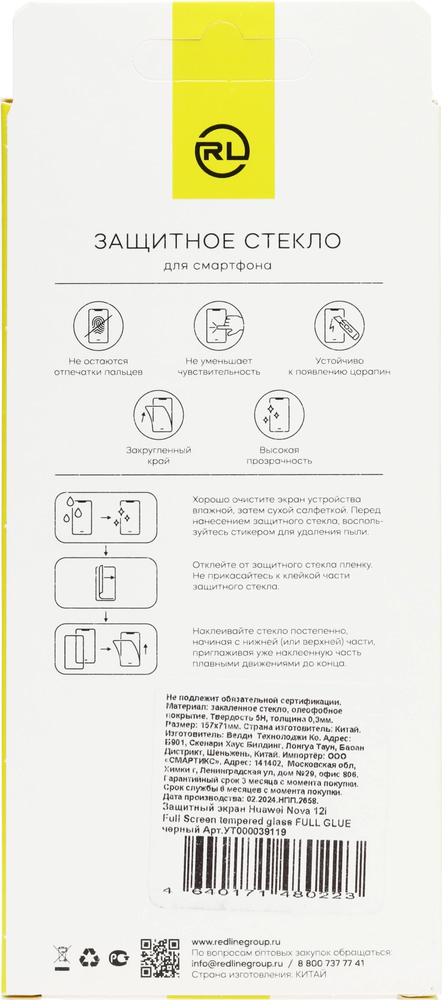 В комплект поставки входит: Защитное стекло, Влажная салфетка, Салфетка из микрофибры, Стикеры для удаления пыли с экрана, Стикеры для фиксации стекла на экране смартфона.