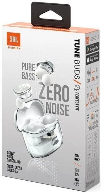 1 х наушники JBL Tune Buds, 1 х чехол для зарядки, 1 х USB-кабель для зарядки типа C, 1 х 3 размера насадок, 1 гарантия/предупреждение (W/!), 1 краткое руководство/паспорт безопасности (S/i)