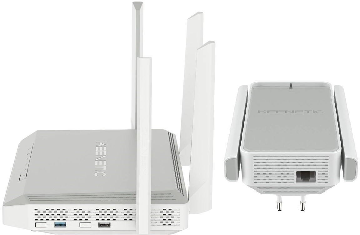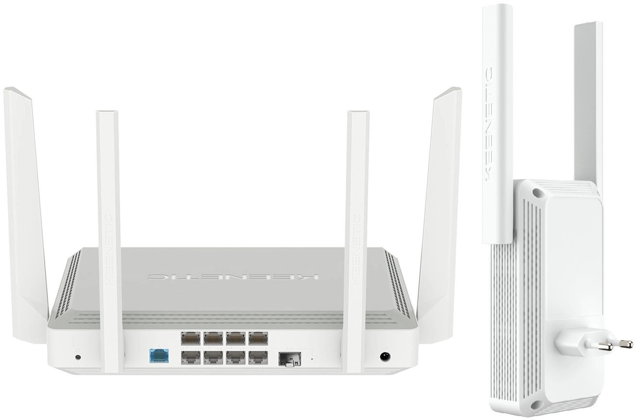 Гигабитный интернет-центр с двухдиапазонным Mesh Wi-Fi AC2600, двухъядерным ARM-процессором, 10-портовым коммутатором Smart Pro, портами SFP, USB 3.0 и 2.0 + Mesh-ретранслятор Keenetic Buddy 5 - 1 шт для расширения сети в большой квартире, частном доме или небольшом офисе.