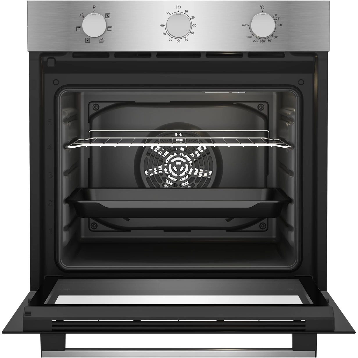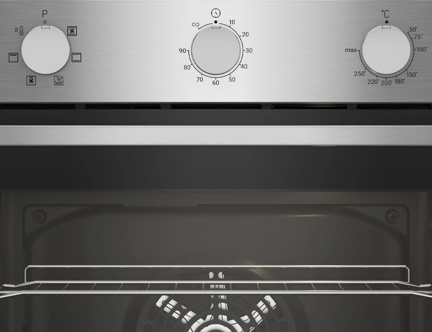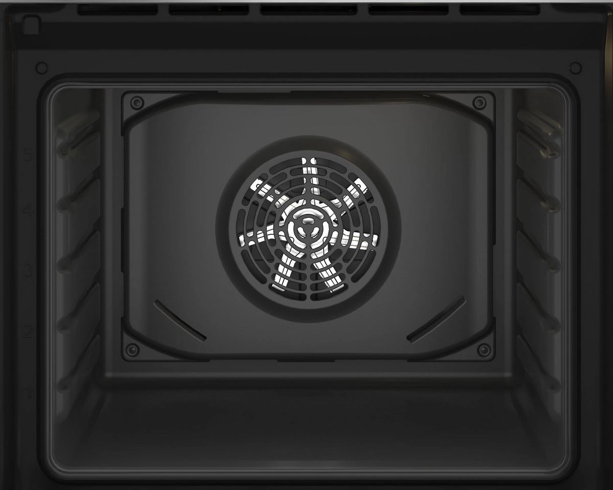 вентилятор охлаждения, полностью стеклянная внутренняя поверхность дверцы духовки, утапливаемые переключатели