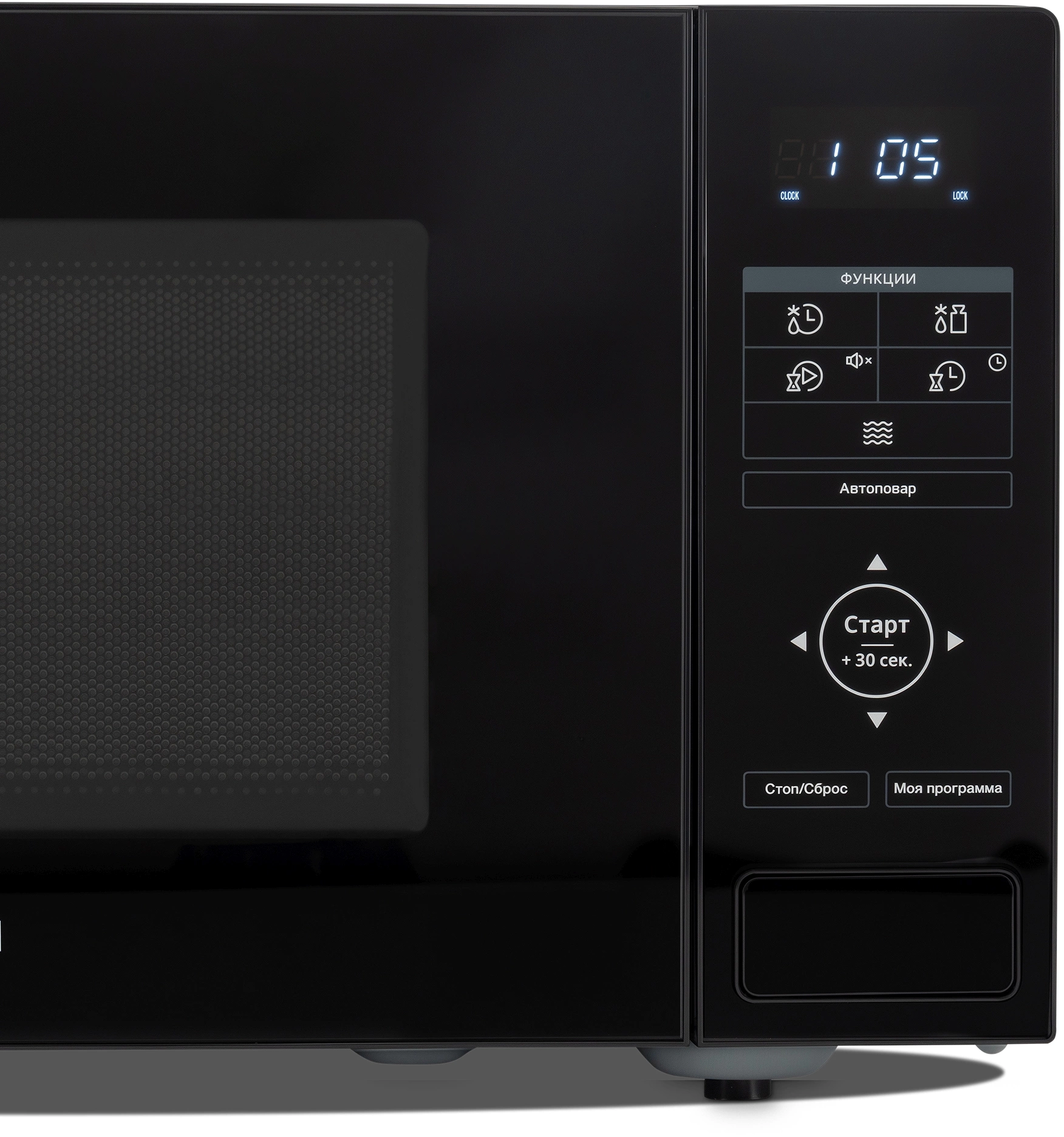 Управление дополнено удобным звуковым сигналом, оповещающим об окончании работы. Функционал устройства включает в себя автоматический разогрев и автоматическую готовку, а также режим «соло».