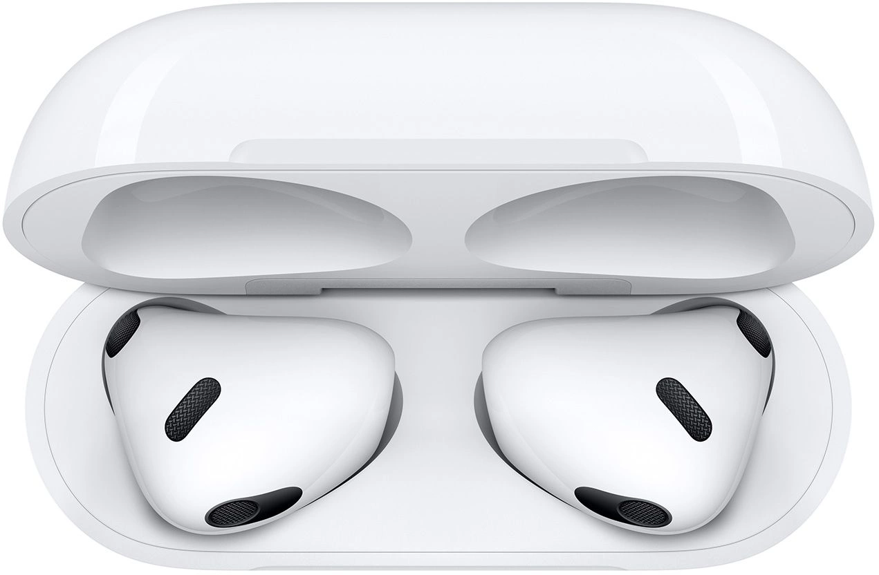 наушники AirPods, зарядный футляр Lightning, кабель Lightning/USB-С, документация