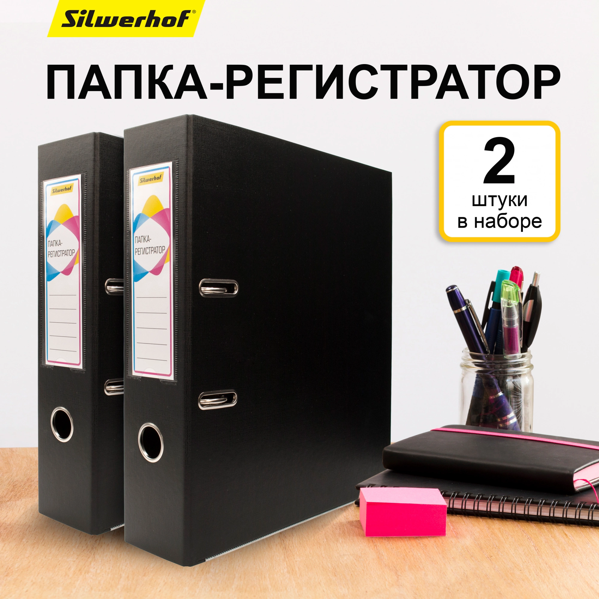 Папка-регистратор Silwerhof A4 75мм двусторон.ПВХ черный мет.окант. сборная (упак.:2шт)