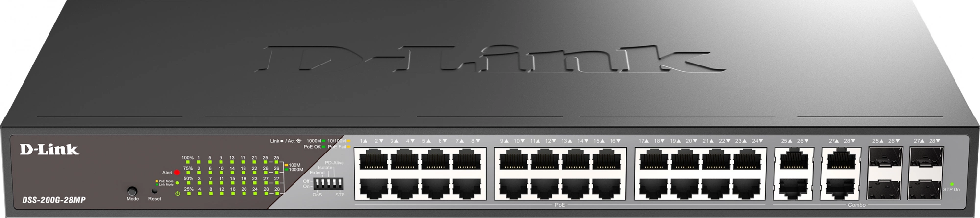 Коммутатор DSS-200G-28MP, кабель питания, краткое руководство по установке.