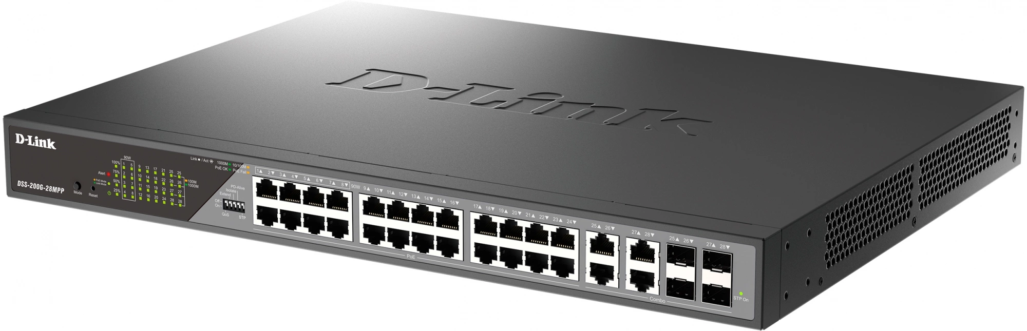 Коммутатор DSS-200G-28MPP, кабель питания, краткое руководство по установке.