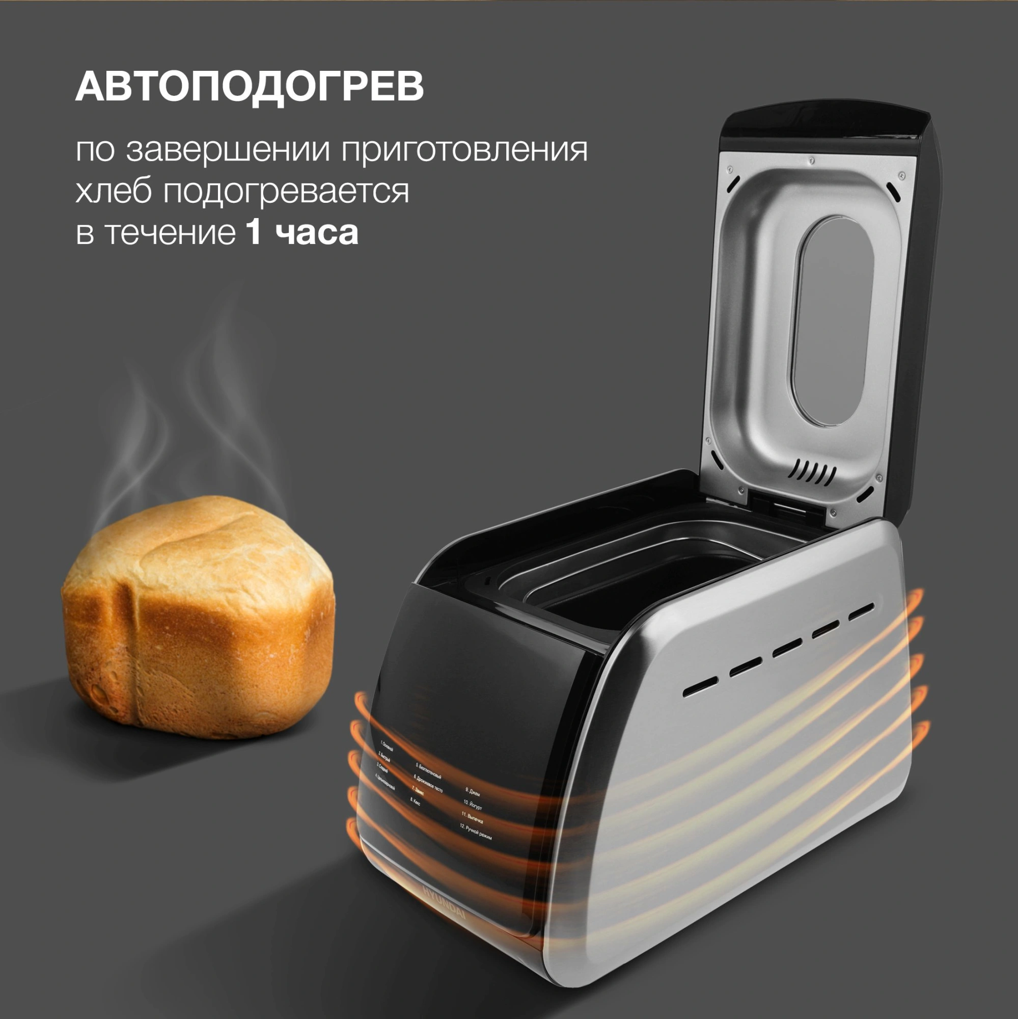 Отсрочка старта: Таймер отсрочки старта на 15 часов позволяет приготовить свежий хлеб к нужному времени, например, к завтраку.