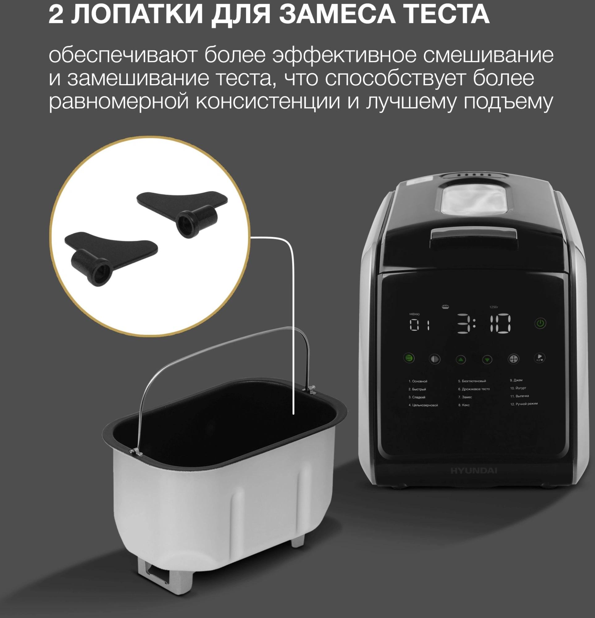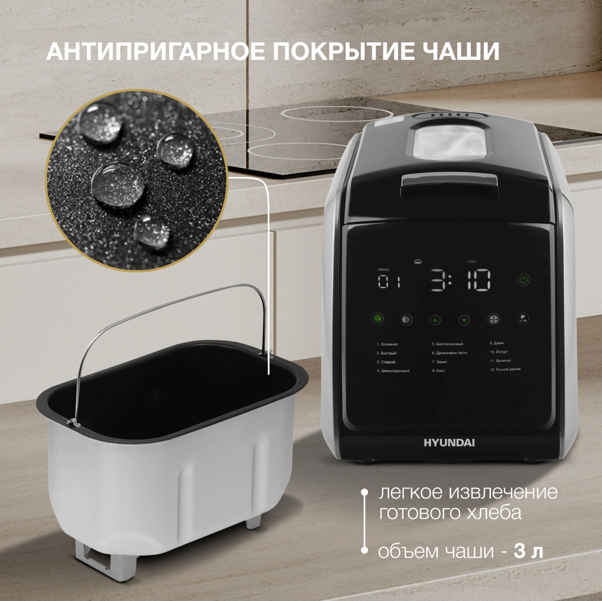 Хлебопечь Hyundai HYBM-5085 станет надежным помощником на кухне, позволяя легко приготовить свежий, ароматный хлеб и разнообразную выпечку. Обладает вместительной формой для выпечки буханки и расширенным функционалом, делая готовку необременительной и приятной.