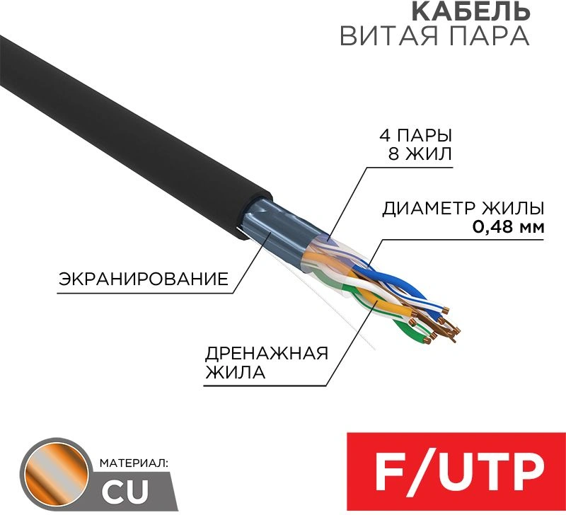 Кабель информационный PROconnect 01-0154 кат.5E FTP 4 пары 24AWG PE внешний 305м черный