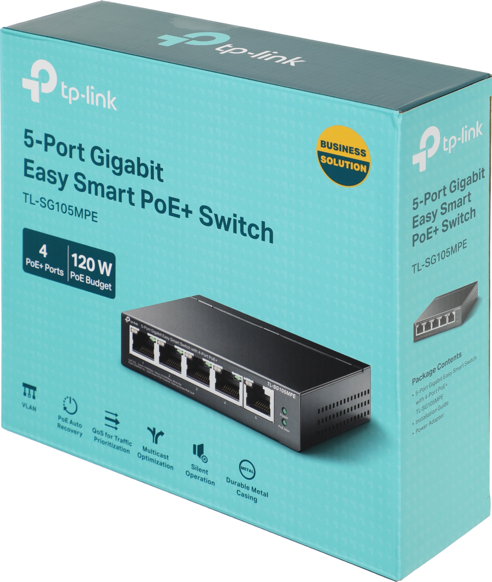 Четыре порта с поддержкой стандартов 802.3af/at и бюджетом PoE до 30 Вт на порт позволяют передавать данные и подавать питание по одному кабелю вместо двух.