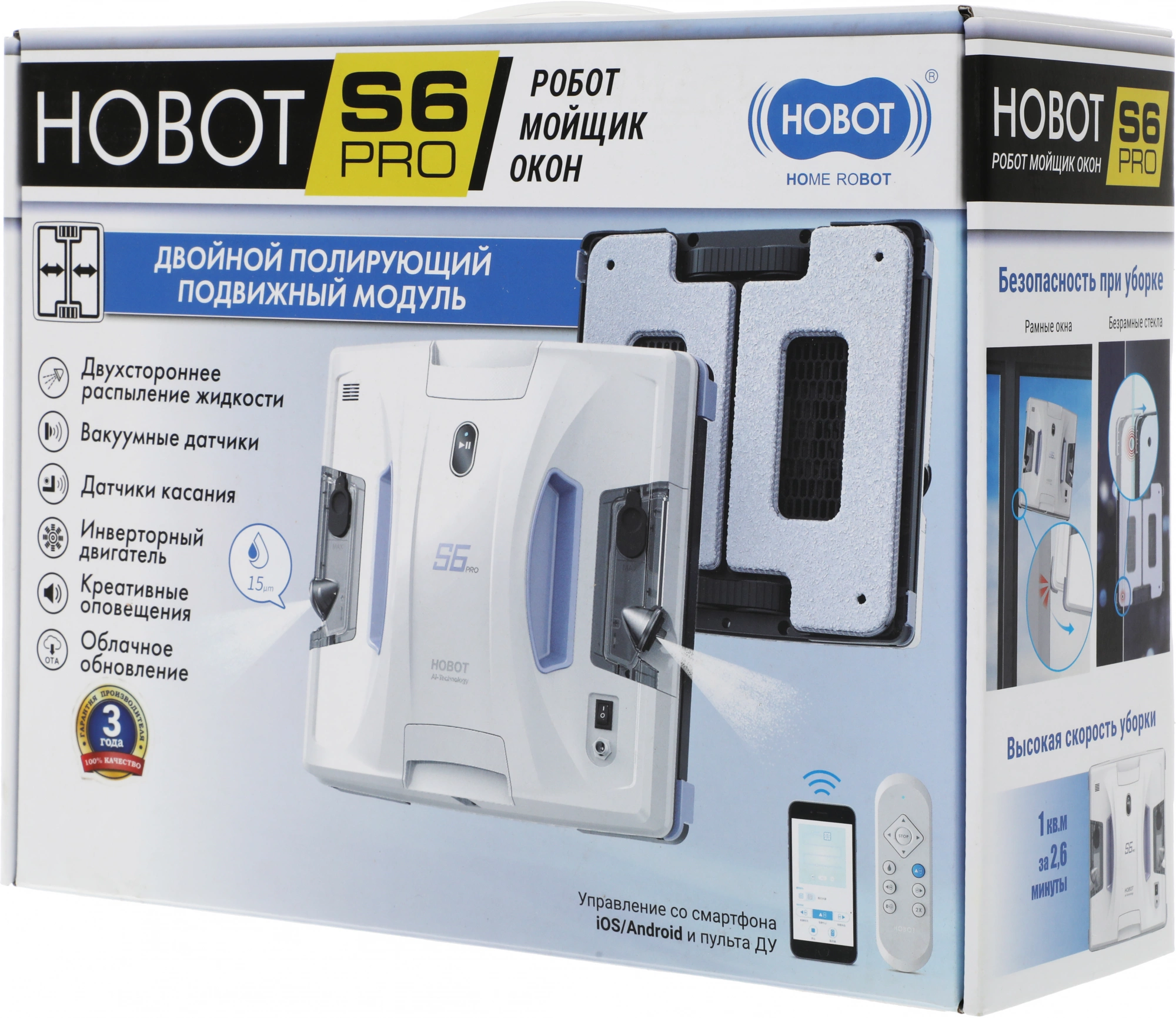 робот Hobo-S6 Pro; страховочный шнур; пульт дистанционного управления; адаптер питания; кабель питания переменного тока; удлинитель постоянного тока; чистящая жидкость (220 мл.); ультразвуковой распылитель Ultrasonic (2 шт.); чистящие салфетки (6 шт.); руководство пользователя, гарантийный талон.