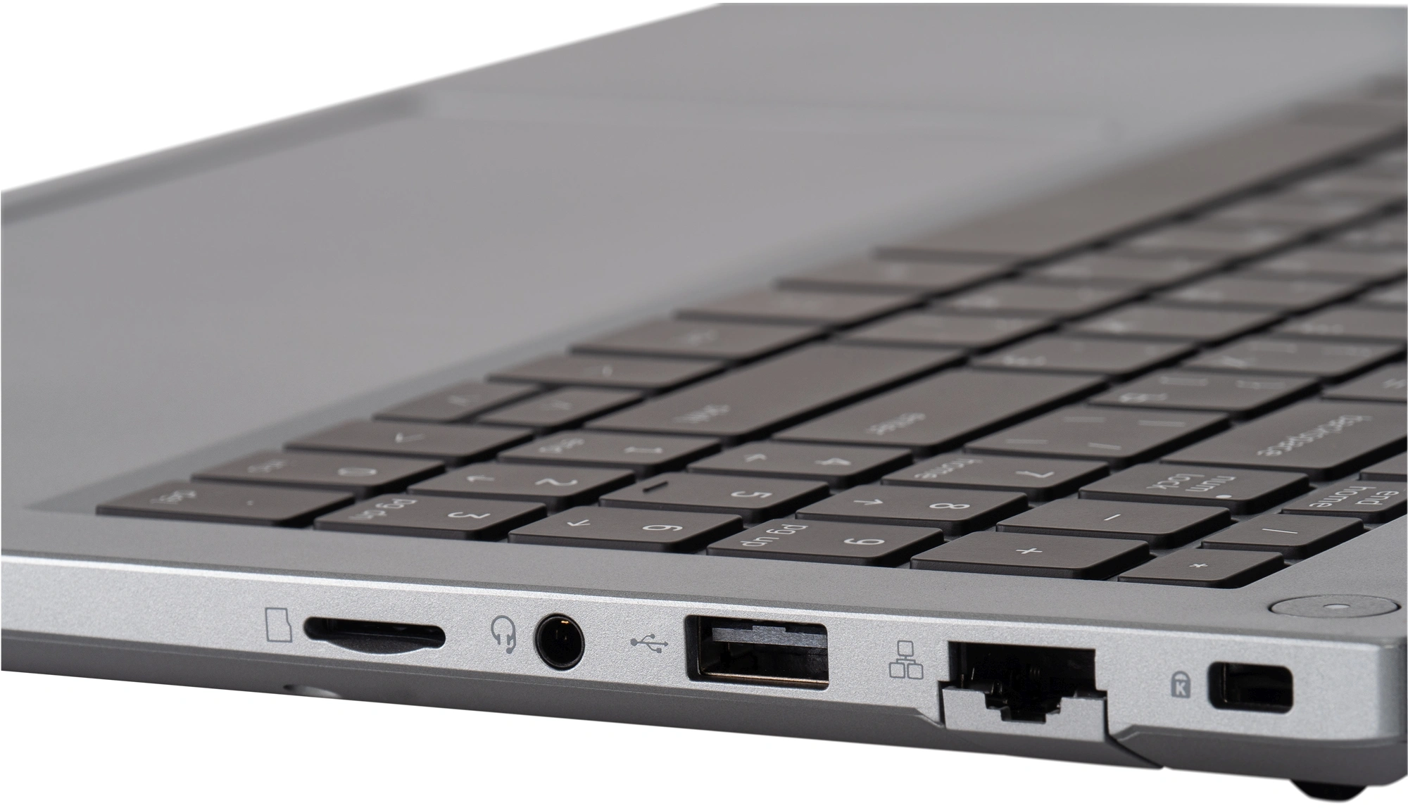 Многообразие портов: Ноутбуки FORTIS M оснащены всеми необходимыми разъемами для подключения периферийных устройств: USB 2.0, USB 3.0, USB-C, HDMI, RJ-45 (1 Gbit), а также слотом для карт памяти microSD и аудиоразъемом 3,5 мм.
