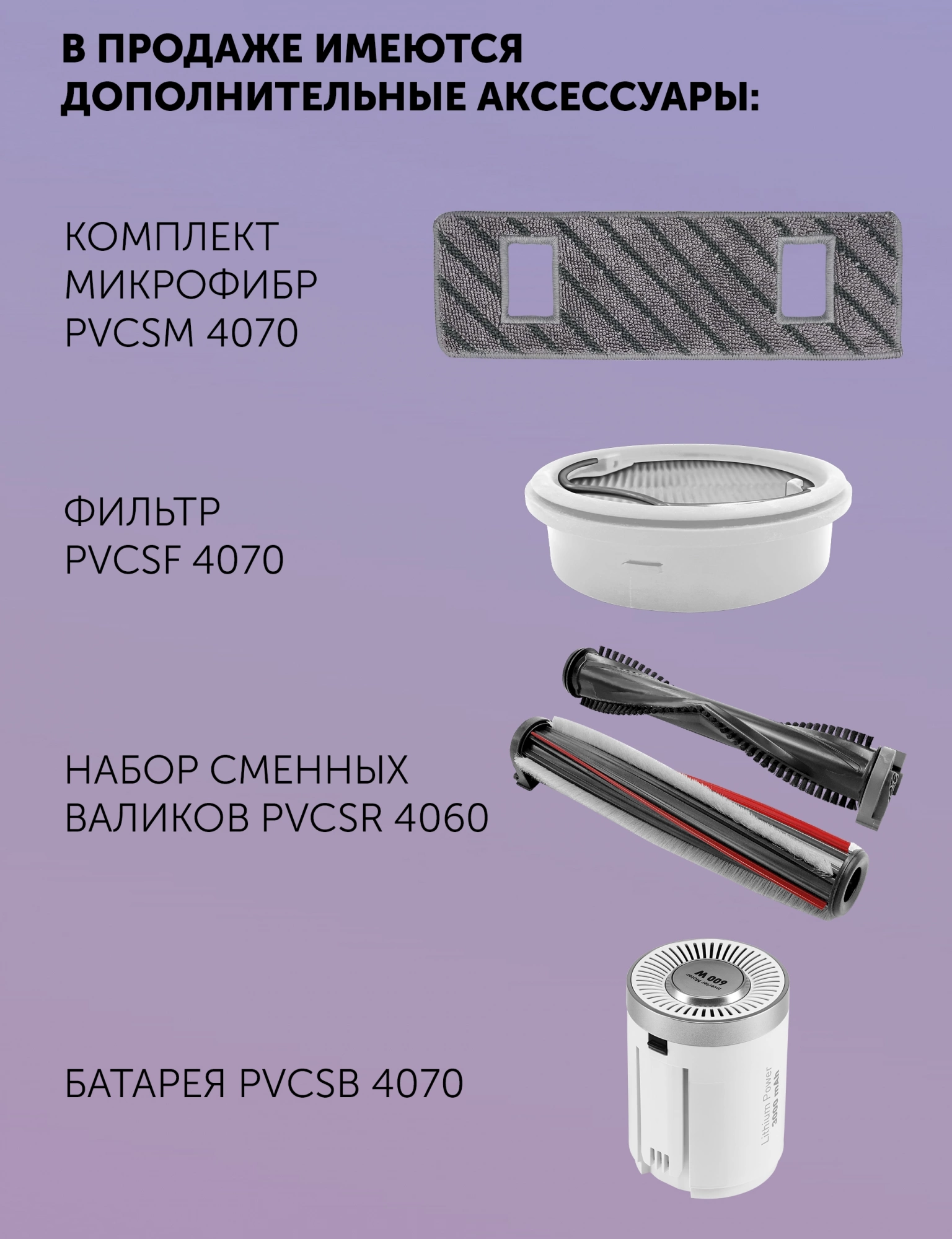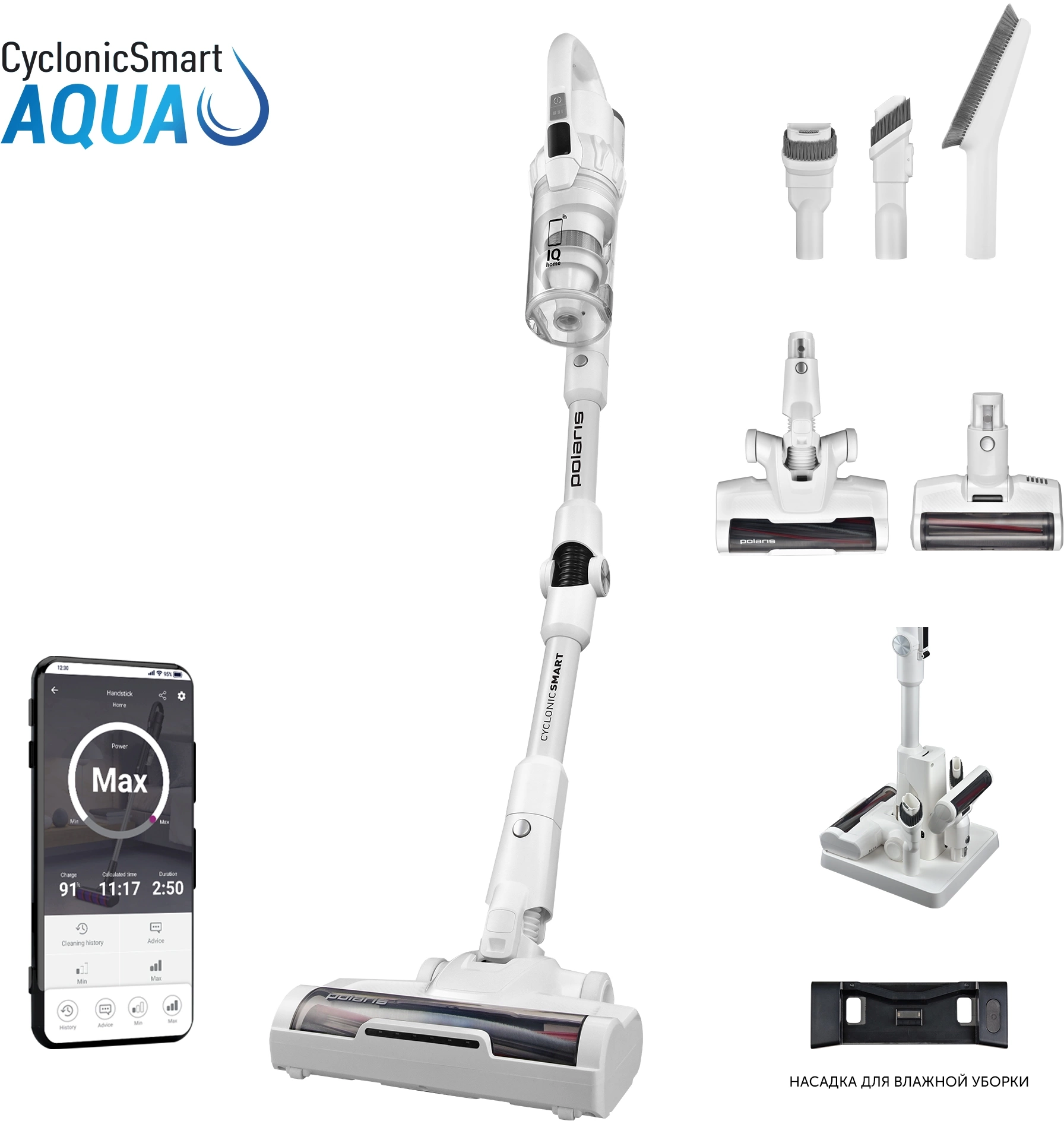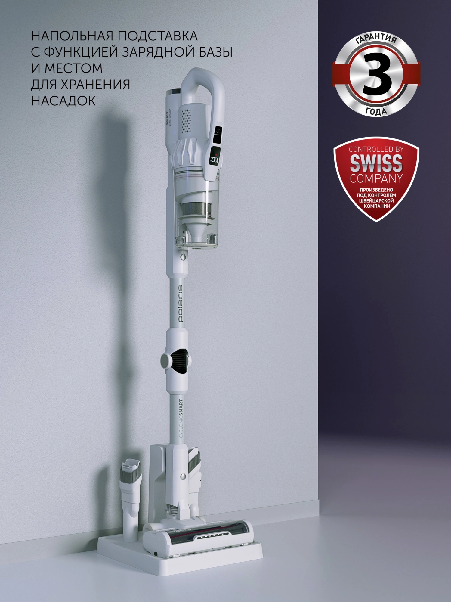 LED-дисплей, место для хранения насадок, напольная подставка, подсветка зоны уборки