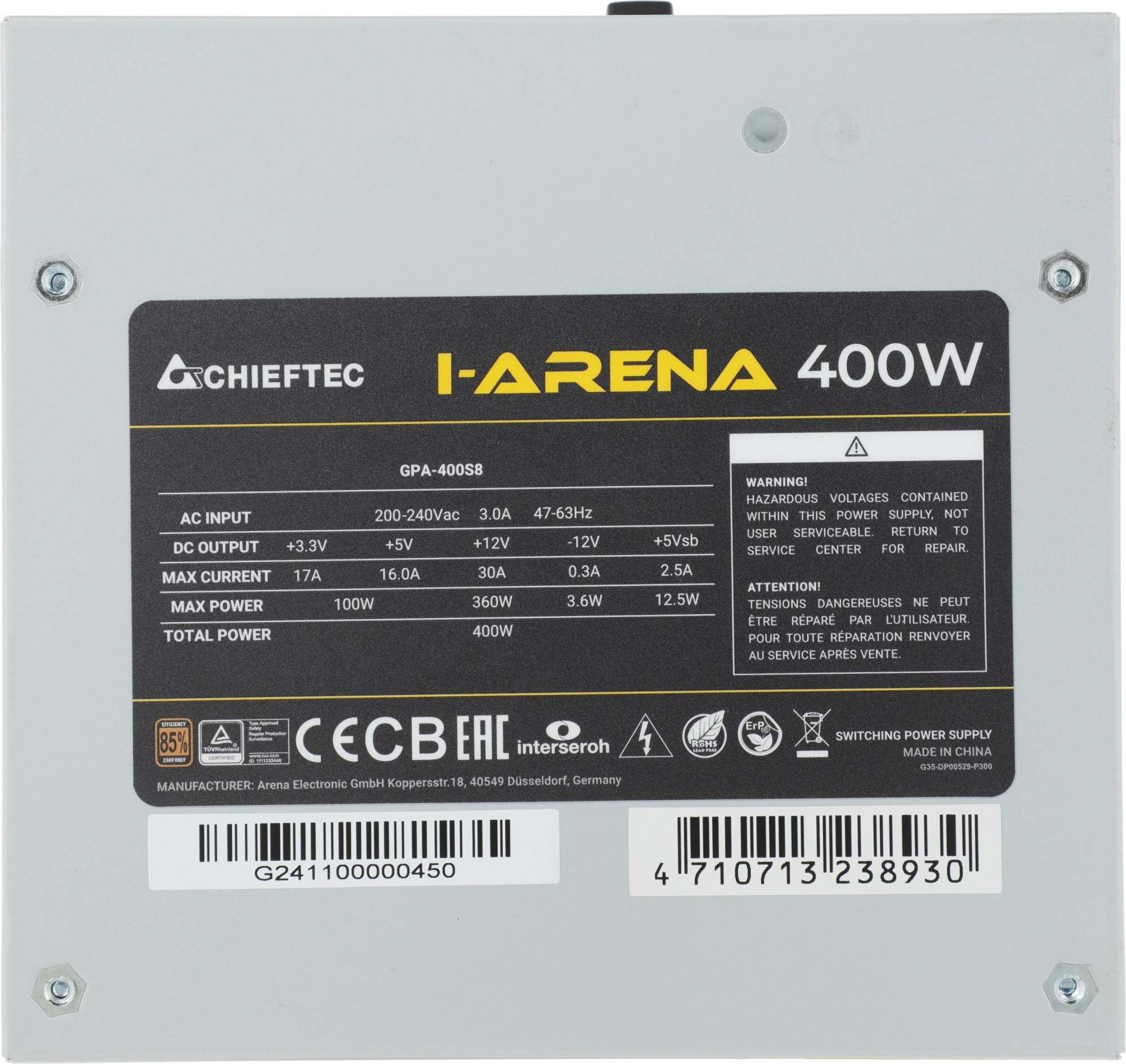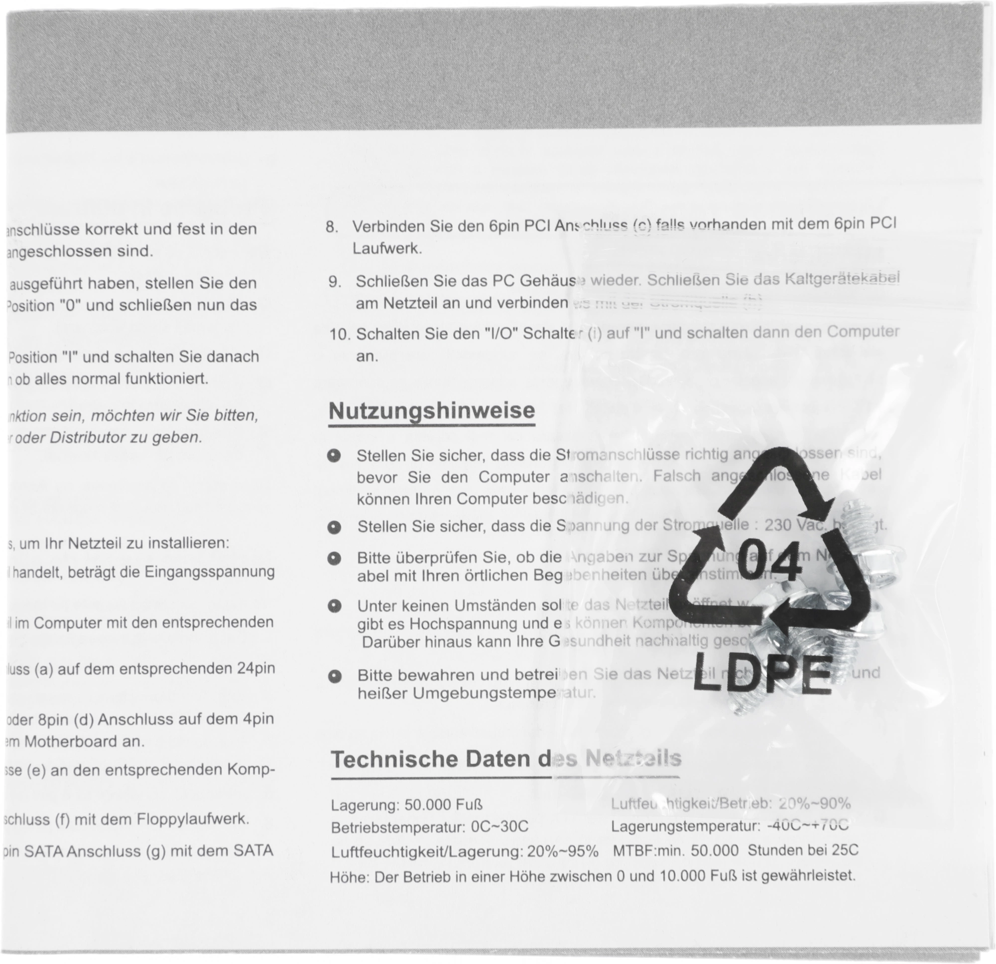 AFC (автоматический контроль скорости вращения), OPP (защита от перегрузки), OVP (защита от подачи повышенного напряжения), SCP (защита от короткого замыкания), SIP (защита от импульсных помех), UVP (защита от подачи пониженного напряжения)