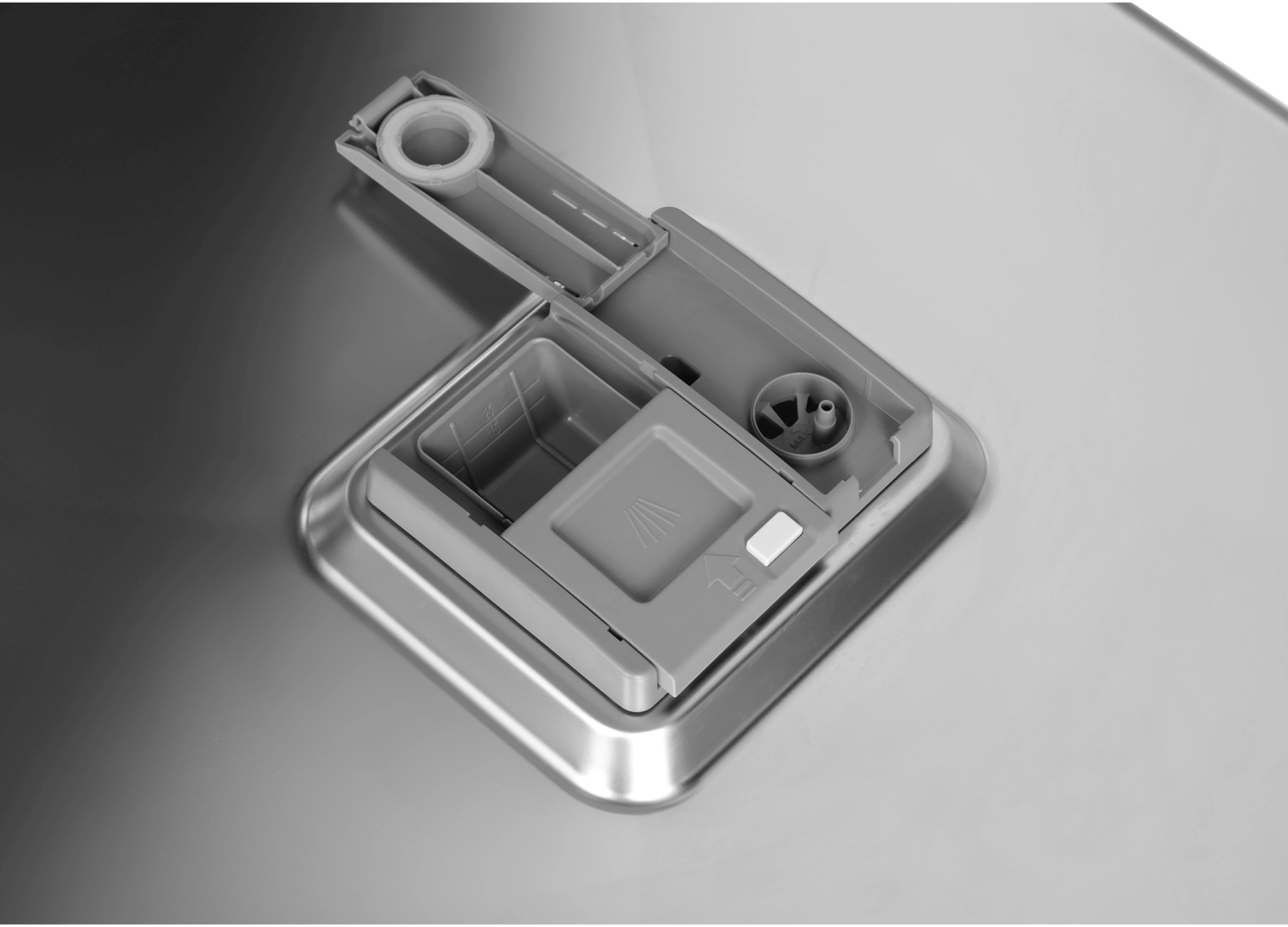 времени до конца программы, звуковой сигнал, луч на полу, наличия ополаскивателя, наличия соли