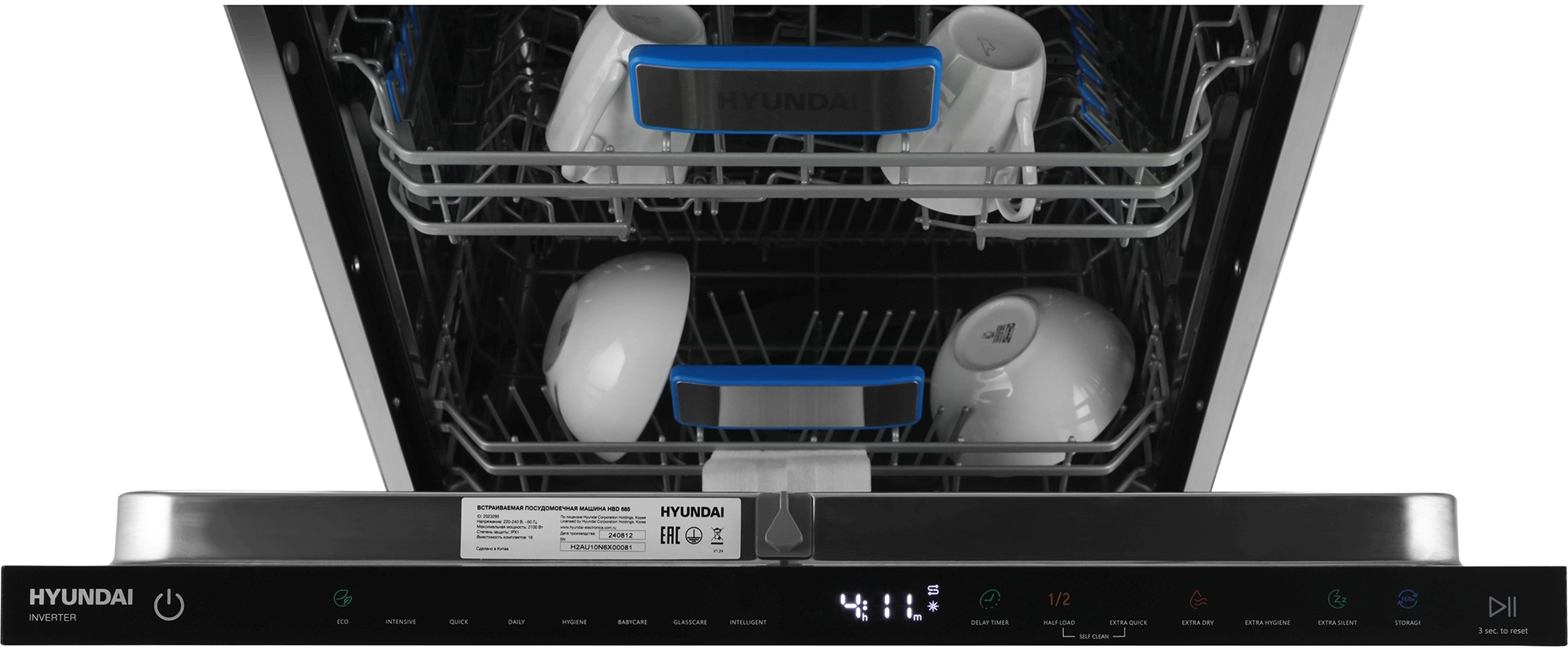 Интеллектуальный режим, Быстрая, Повседневная, Интенсивная, Гигиеническая, Стекло, Детская посуда, ECO
