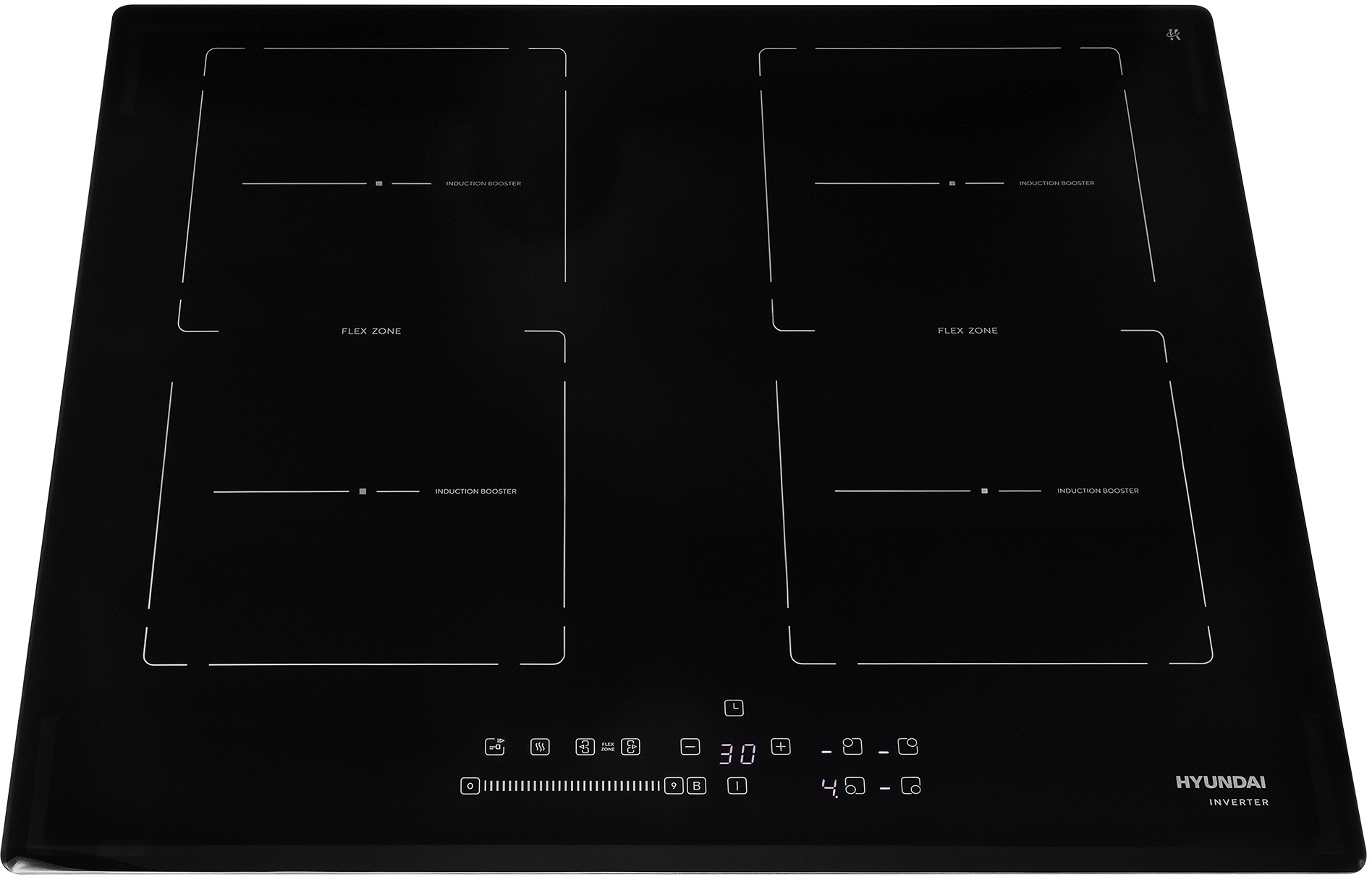 функция INDUCTION BOOSTER (автозакипание), INVERTER , функция FLEX ZONE (объединение зон нагрева), функция STOP&GO, функция KEEP WARM
