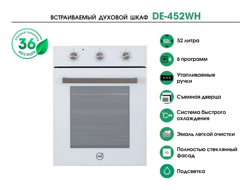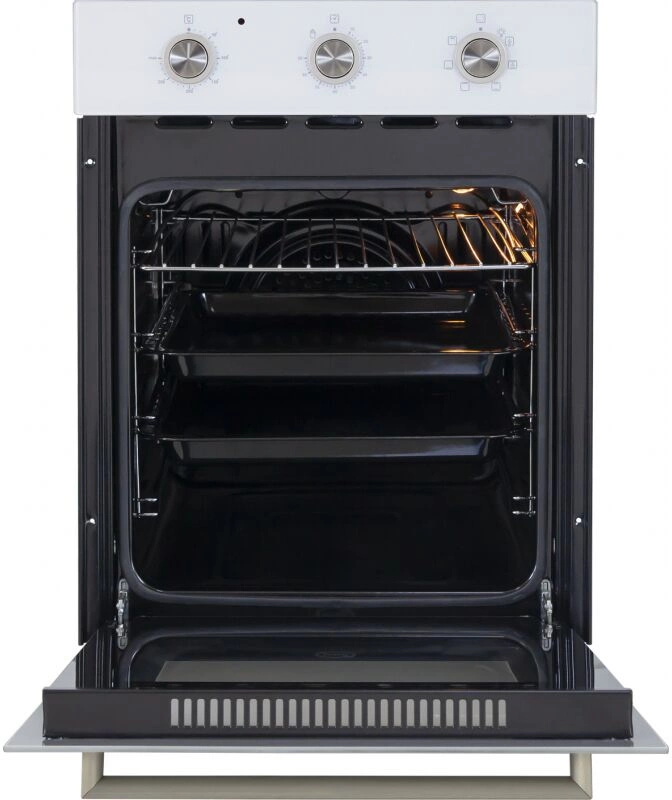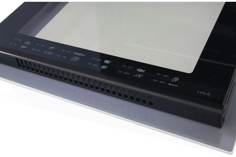 вентилятор охлаждения, полностью стеклянная внутренняя поверхность дверцы духовки, утапливаемые переключатели