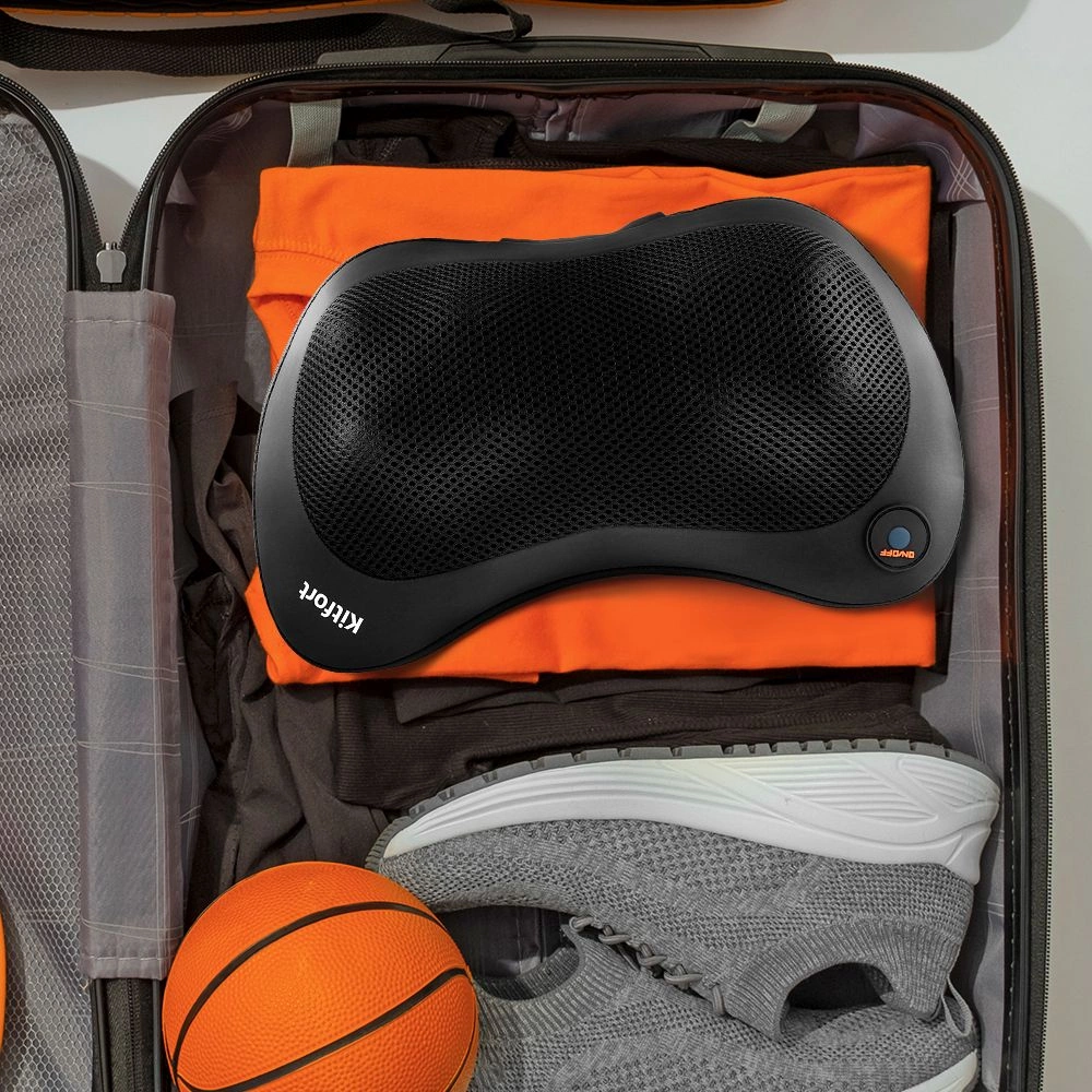 Управление прибором осуществляется одной кнопкой. У массажёра есть функция инфракрасного прогрева, которая улучшает кровообращение и лимфоотток, тем самым повышая эффективность массажа. После 15-минутного сеанса сработает таймер с автоотключением.